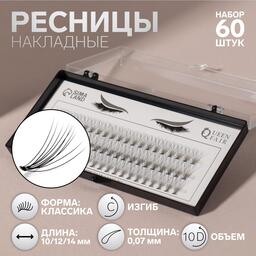 Набор накладных ресниц «Классика», пучки, 10, 12, 14 мм, толщина 0,07 мм, изгиб C, 10 D