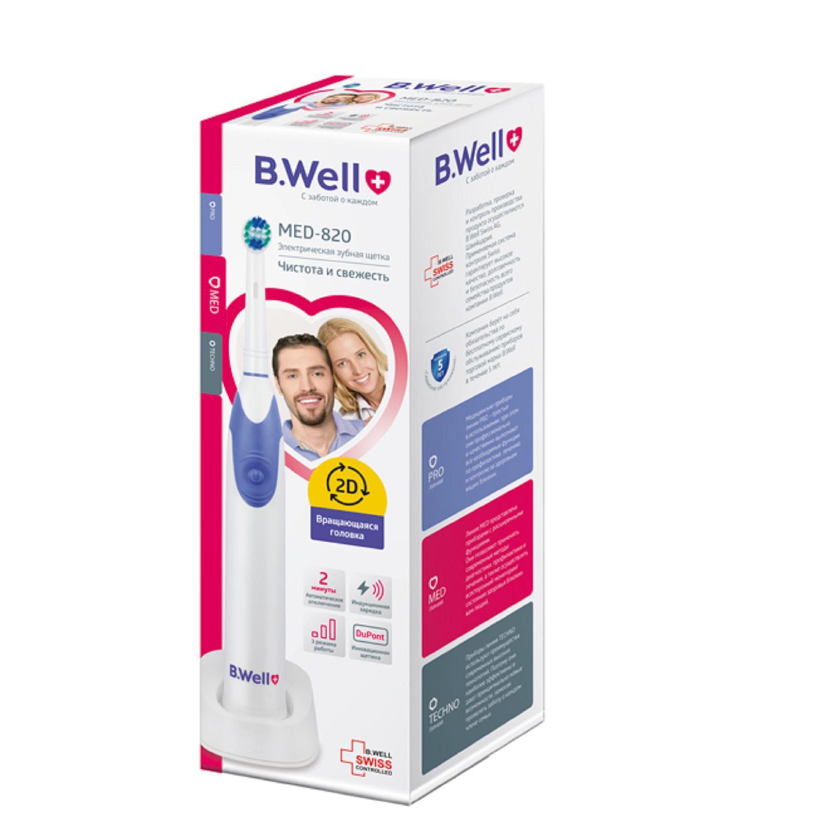 Электрическая зубная щётка B.Well MED-820, 3 режима, 2 насадки, таймер 2 мин, бело-голубая