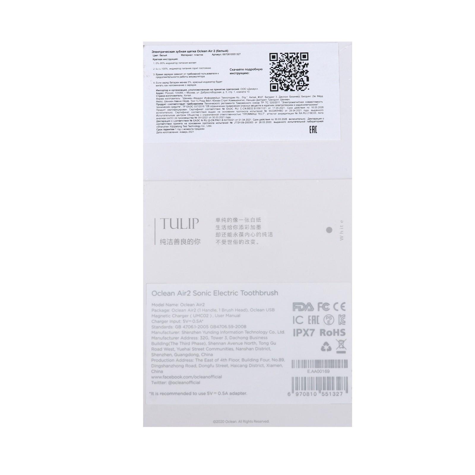 Электрическая зубная щетка Oclean Air 2, звуковая, 40000 движ/мин, 2 режима, АКБ, белая
