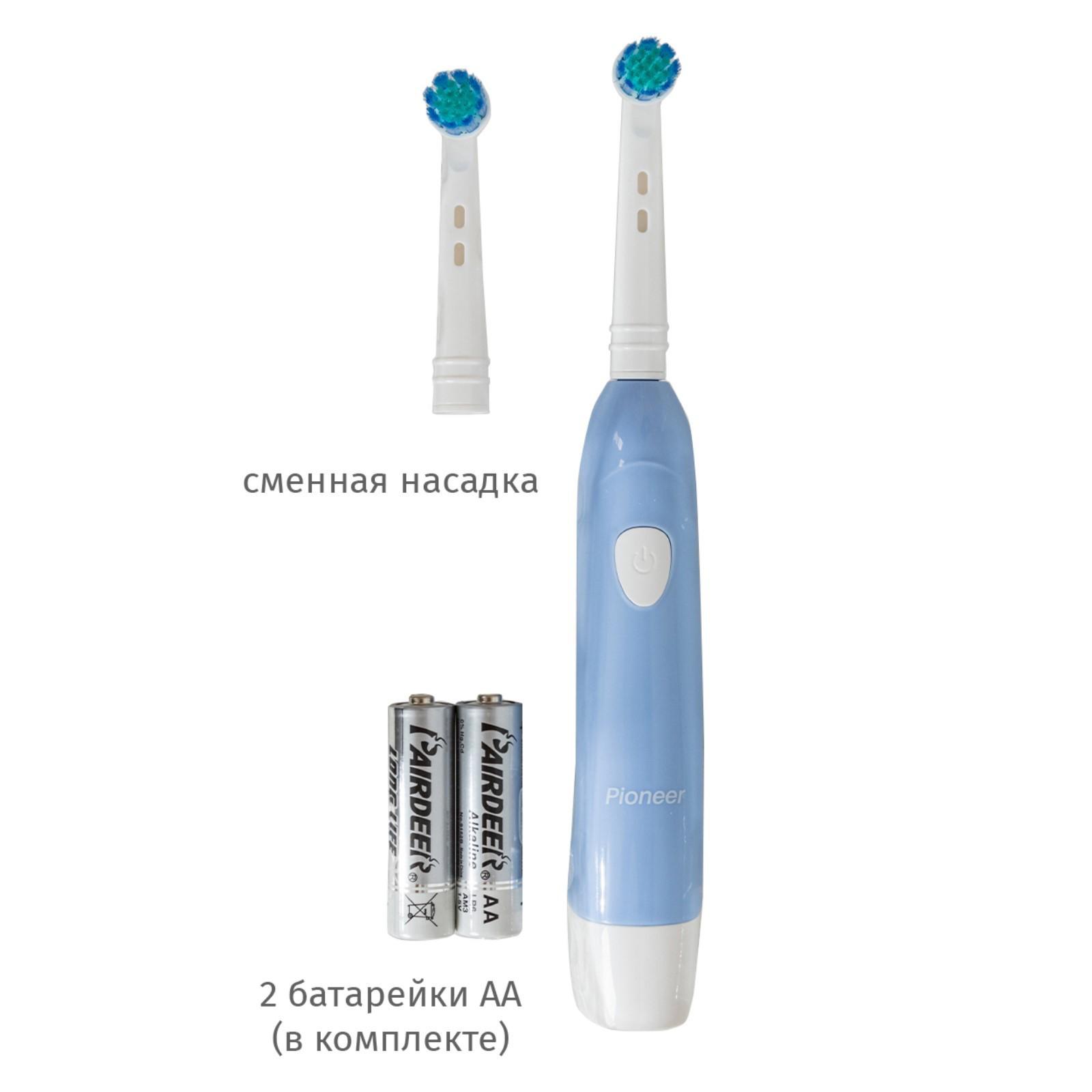 Электрическая зубная щётка Pioneer TB-1020, детская, 1 сменная насадка, цвет голубой с белым 94105