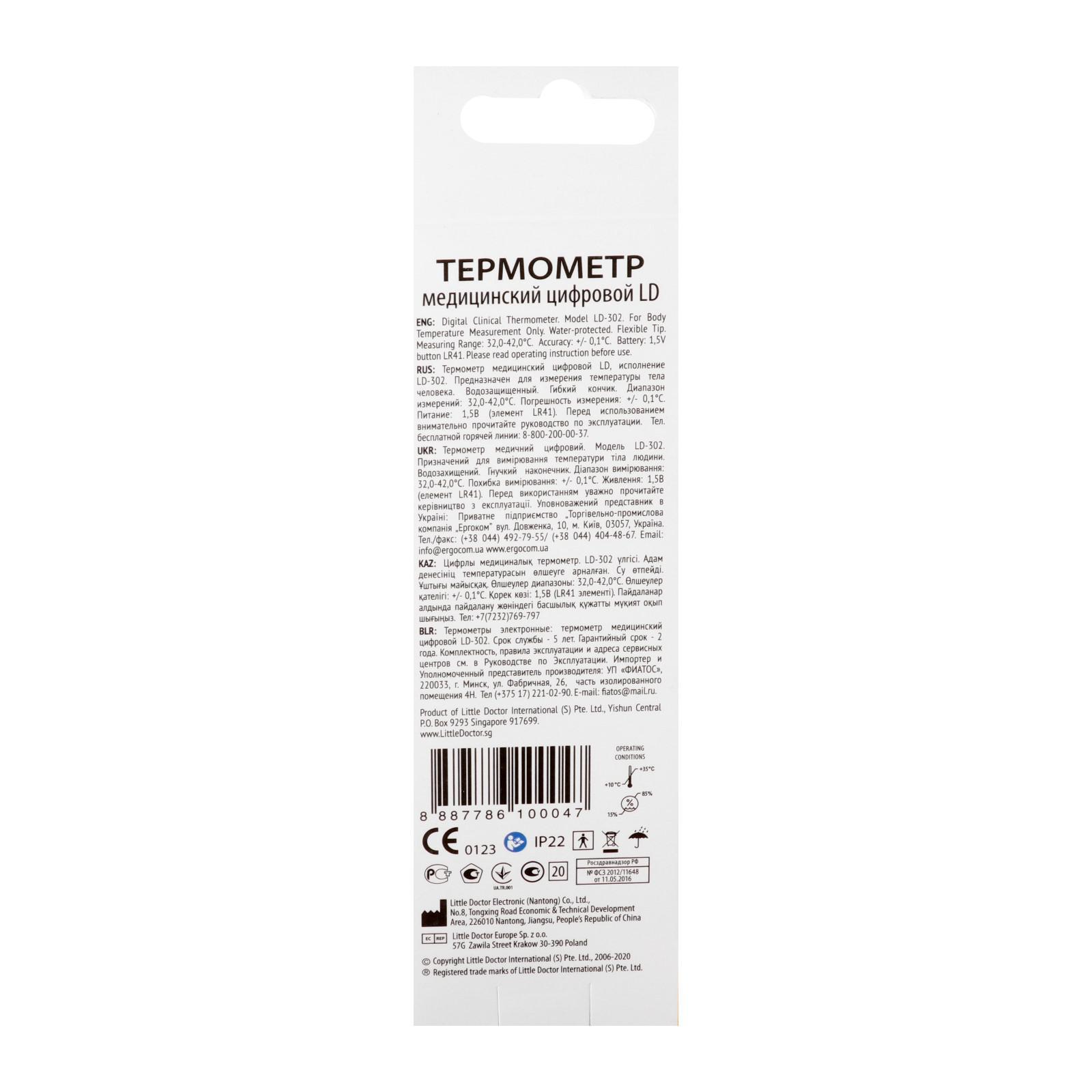 Электронный цифровой термометр Little Doctor LD-302 предназначен для измерения температуры тела ректальным, аксиллярным (подмышечным) и оральным способами. Гибкий корпус значительно снижает риск получить травму. Имеет защиту от воды, его можно мыть и погружать в воду, но не более чем на 30 минут.