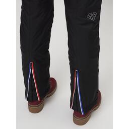 Внутри подкладка из флиса и полиэстера. В области колена имеются швы, предотвращающие вытягивание материала. Зимний полукомбинезон отлично сочетается с зимними куртками, пуховиками, парками, анараком. Горнолыжные утепленные женские брюки не дадут вам промокнуть, защитят от ветра и холода, а особенные свойства терморегуляции сделают ваше пребывание на свежем воздухе максимально комфортным, а время проведенное за спортивными занятиями приятным. Модель идеальна для лыж, горных лыж, сноубординга.