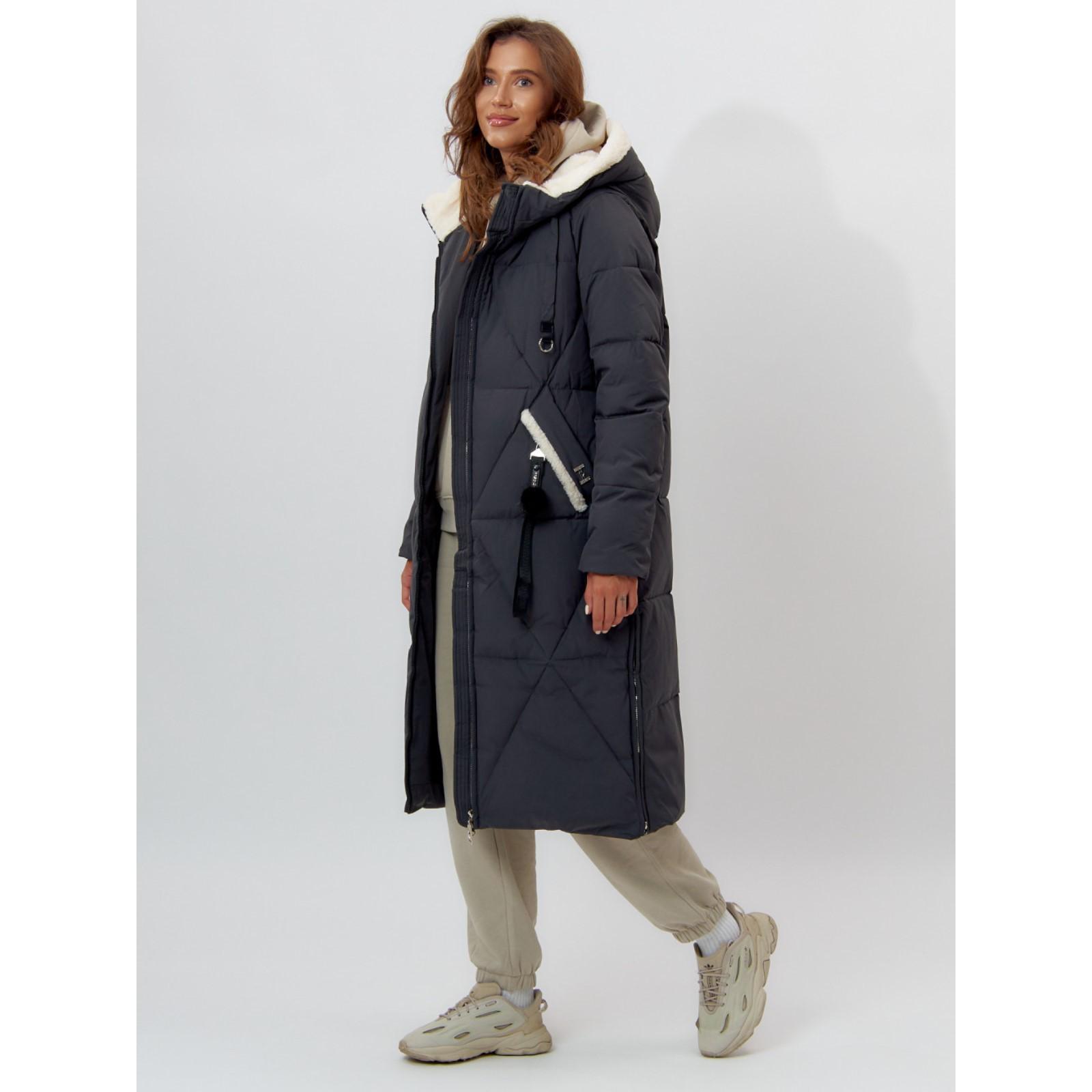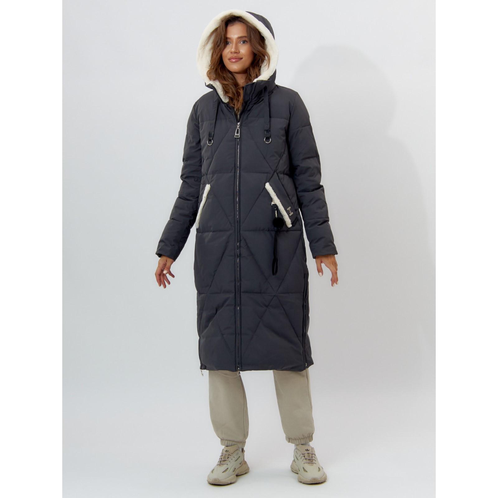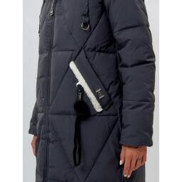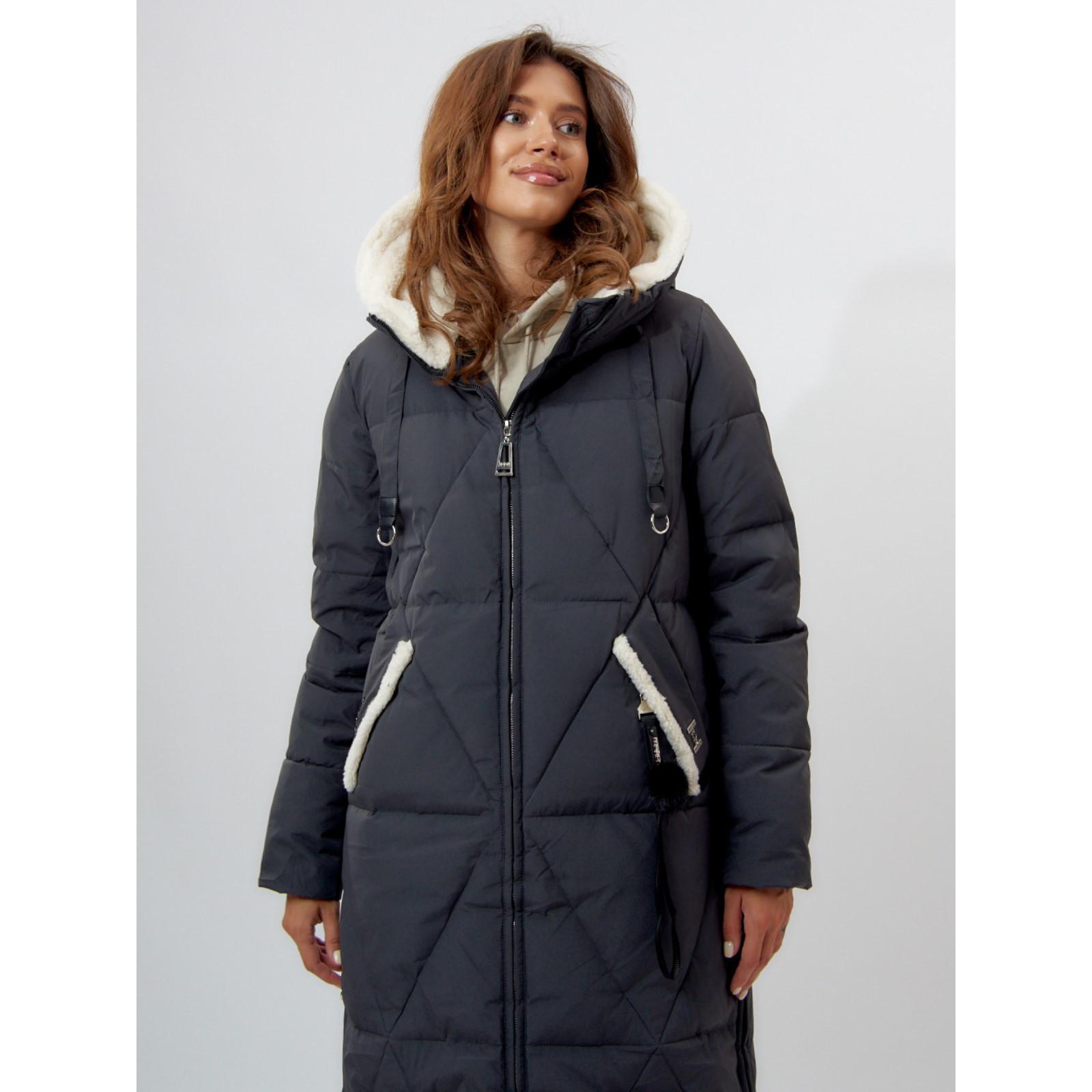Универсальное женское пальто, прямого силуэта, с втачным капюшоном, внутренняя часть которого выполнена из меха. Основная застёжка на молнии с двойным замком, скрытая ветрозащитная планка. Боковые карманы прорезные на кнопках, украшены искусственным мехом, надписью, металлической вставкой и пушистым брелком. На спинке, от линии талии, проложены рельефные швы. В рукавах - трикотажные манжеты. Длинная куртка по бокам, снизу имеет вставку в виде молнии. Зимнее пальто - отличный вариант одежды для женщин, девушек предпочитающих классический стиль одежды. Модель идеально подойдет для активного отдыха и повседневной носки в условиях русских морозов.