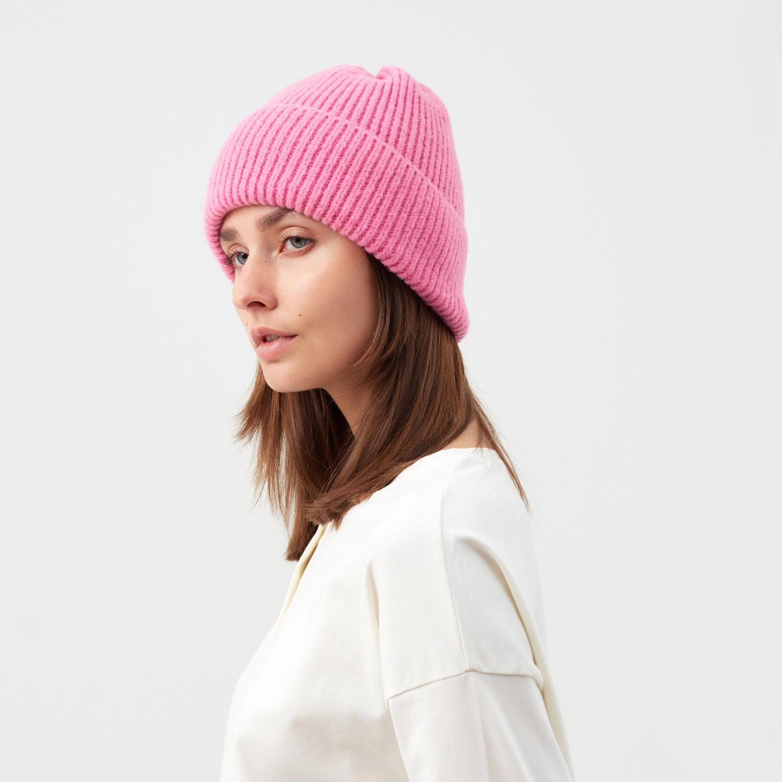 Шапка женская MINAKU с отворотом, размер 54-56, цвет розовый
