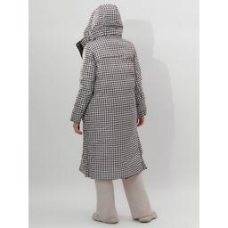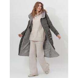 Сложно выбрать утепленное пальто для зимы? Выбирайте двустороннюю удлиненную куртку для надежной защиты от холода. Универсальная куртка прямого кроя, с втачным несъемным капюшоном с регулировкой. Как упоминалось ранее, куртка двусторонняя. Внешний слой однотонный, внутренний в «гусиную лапку». Основная застёжка на молнии с двойным замком, ветрозащитная планка на кнопках. Боковые карманы прорезные на кнопках. На спинке, от линии талии, проложены рельефные швы. Длинная куртка по бокам, снизу имеет прорезь на кнопках.