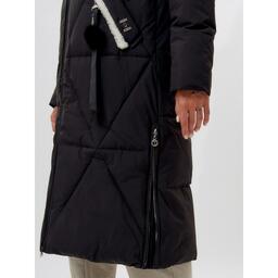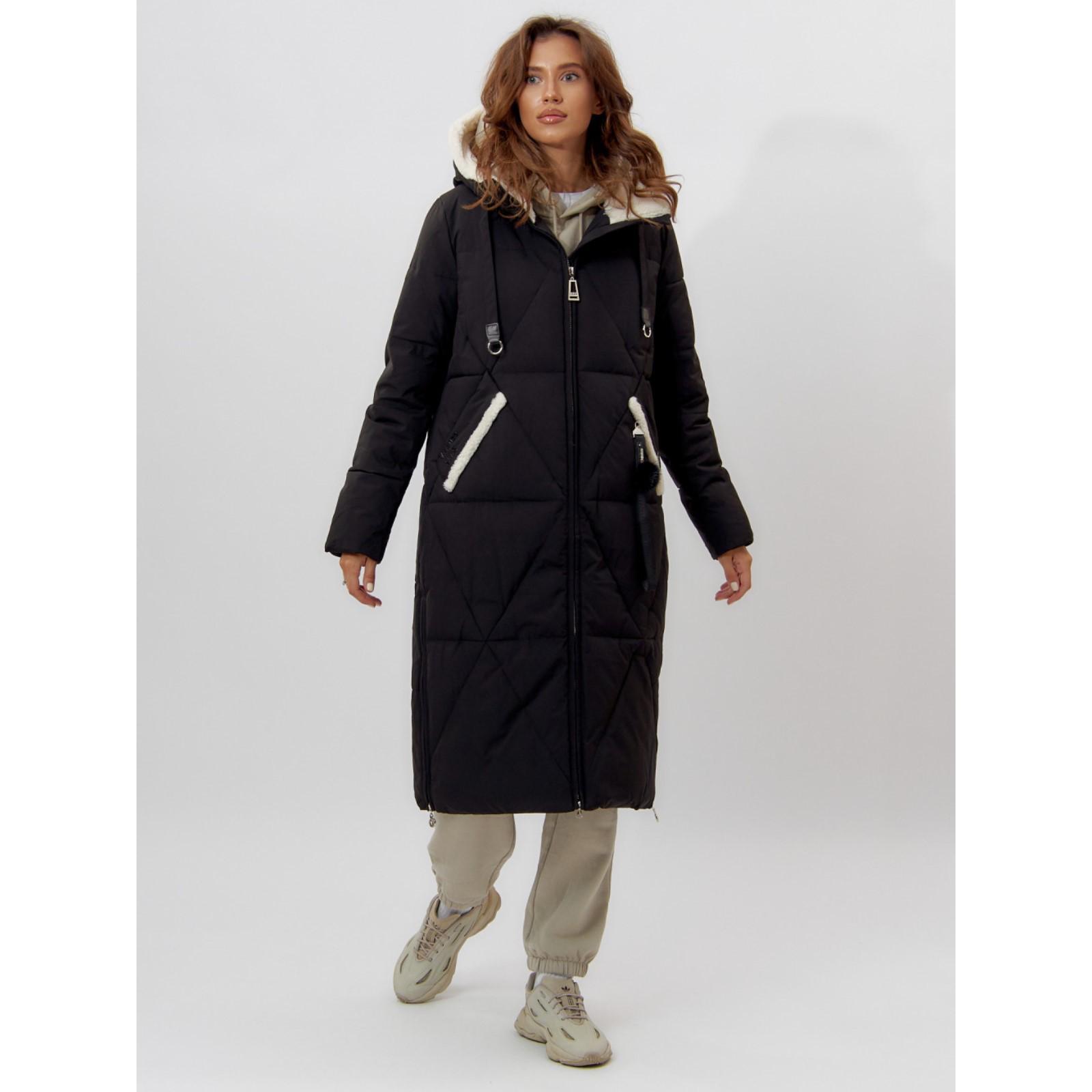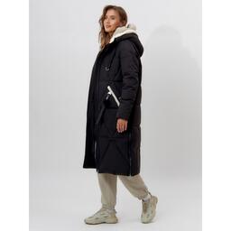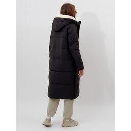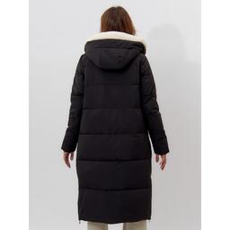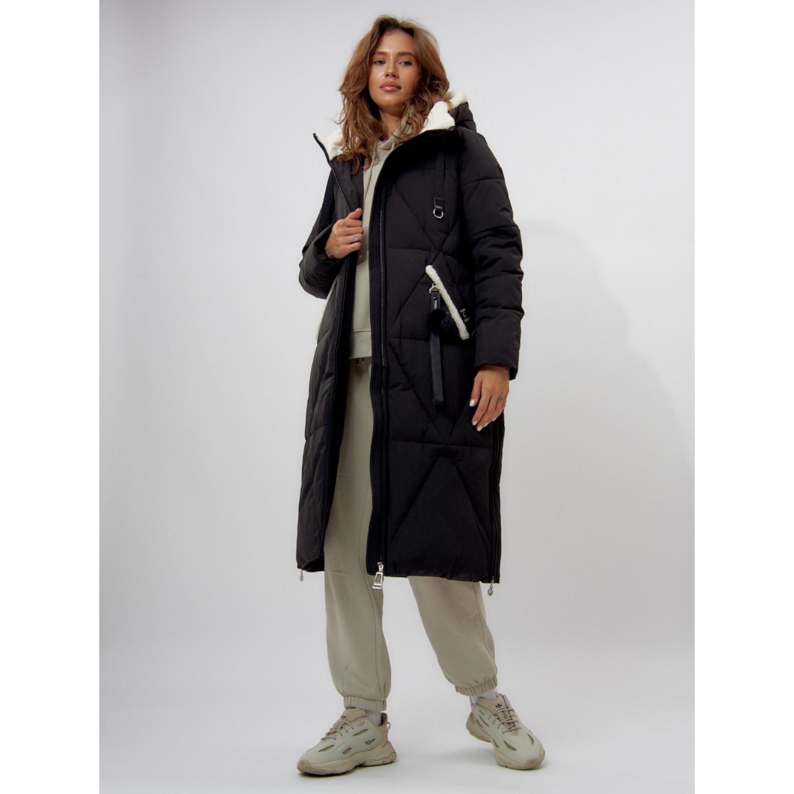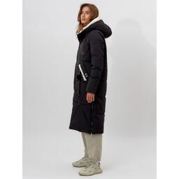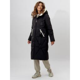 Универсальное женское пальто, прямого силуэта, с втачным капюшоном, внутренняя часть которого выполнена из меха. Основная застёжка на молнии с двойным замком, скрытая ветрозащитная планка. Боковые карманы прорезные на кнопках, украшены искусственным мехом, надписью, металлической вставкой и пушистым брелком. На спинке, от линии талии, проложены рельефные швы. В рукавах - трикотажные манжеты. Длинная куртка по бокам, снизу имеет вставку в виде молнии. Зимнее пальто - отличный вариант одежды для женщин, девушек предпочитающих классический стиль одежды. Модель идеально подойдет для активного отдыха и повседневной носки в условиях русских морозов.