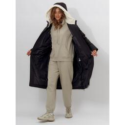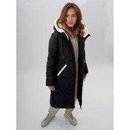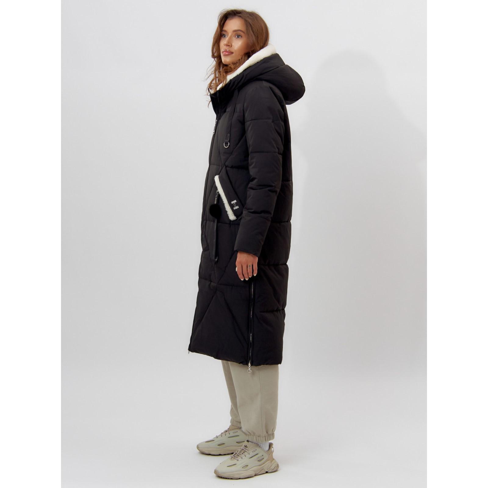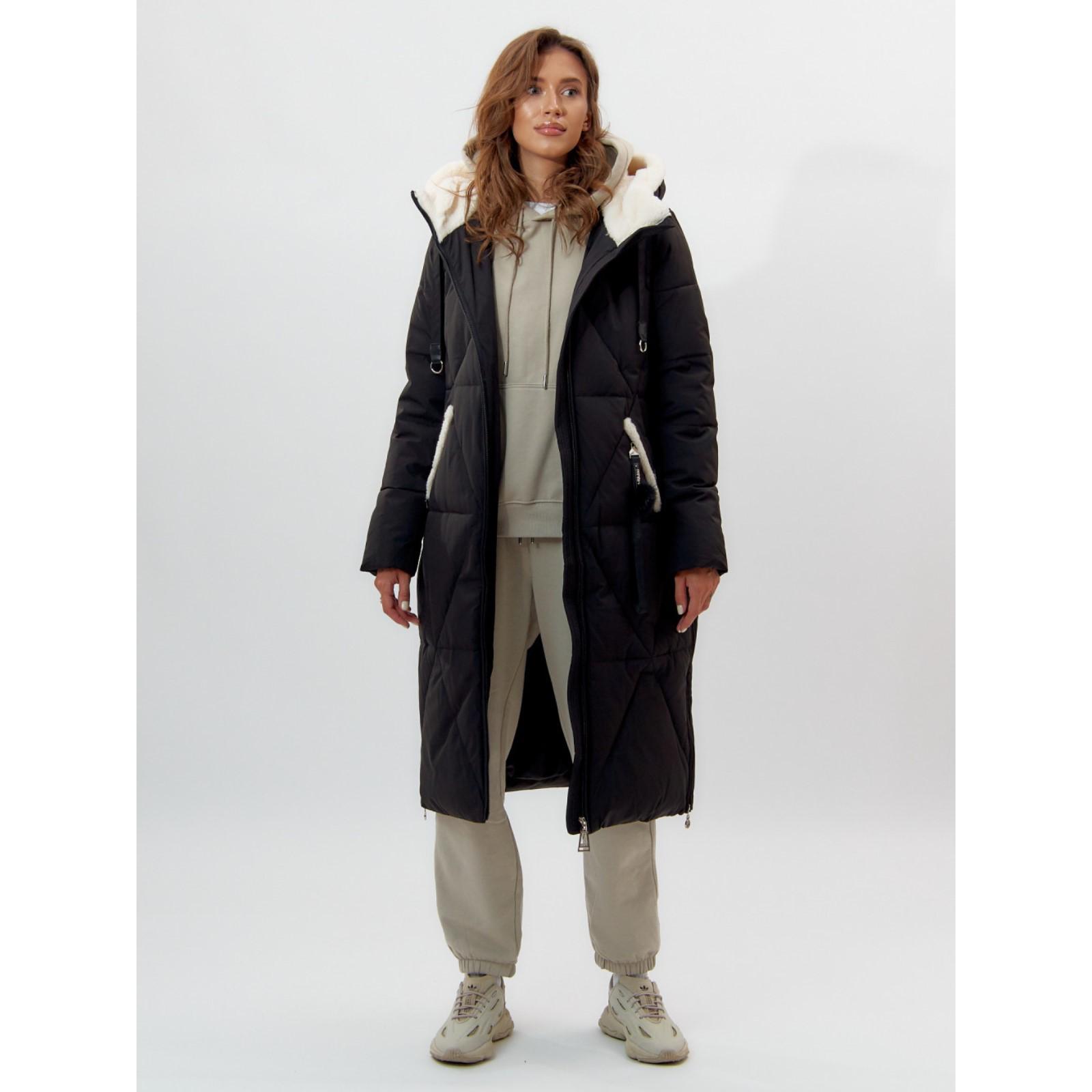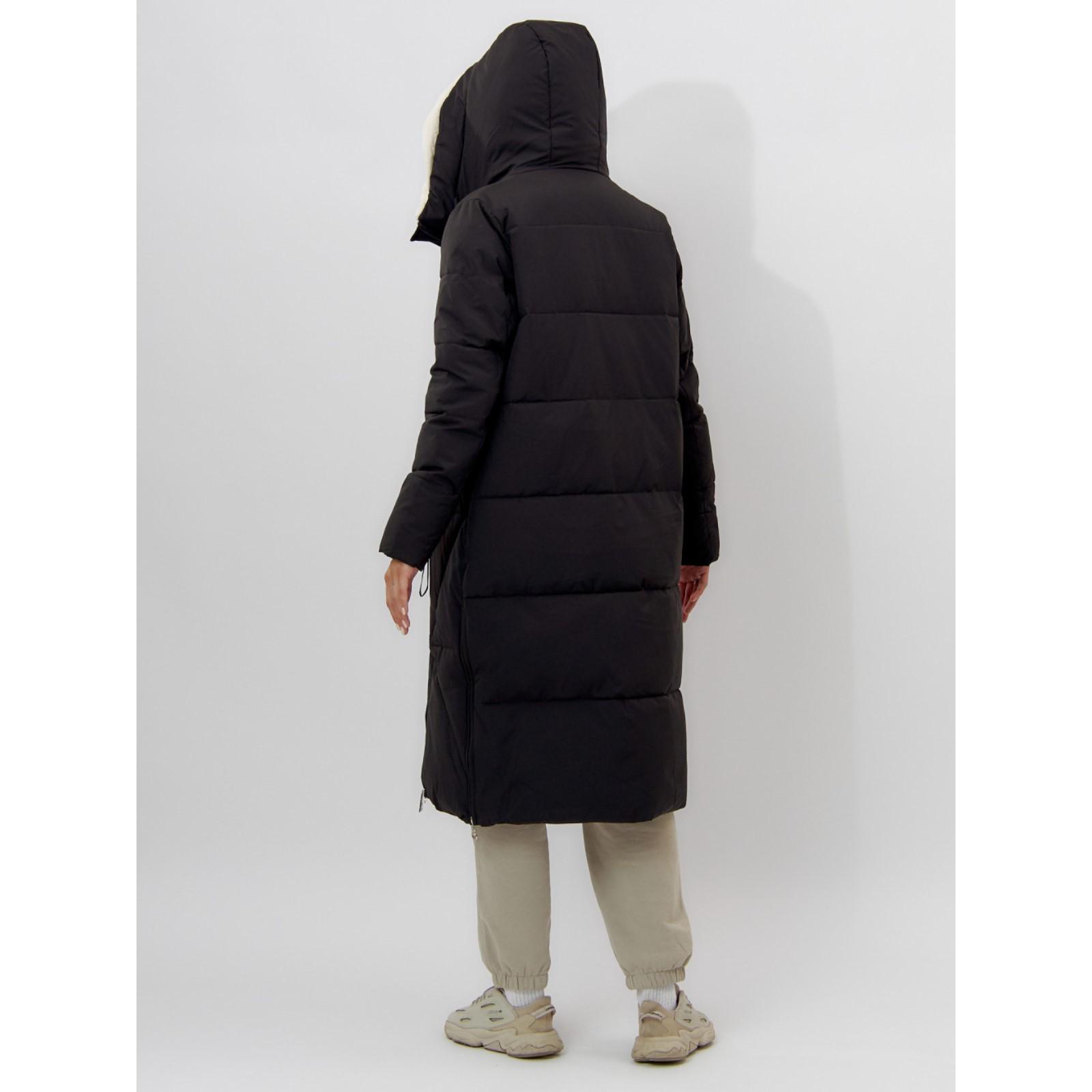 Универсальное женское пальто, прямого силуэта, с втачным капюшоном, внутренняя часть которого выполнена из меха. Основная застёжка на молнии с двойным замком, скрытая ветрозащитная планка. Боковые карманы прорезные на кнопках, украшены искусственным мехом, надписью, металлической вставкой и пушистым брелком. На спинке, от линии талии, проложены рельефные швы. В рукавах - трикотажные манжеты. Длинная куртка по бокам, снизу имеет вставку в виде молнии. Зимнее пальто - отличный вариант одежды для женщин, девушек предпочитающих классический стиль одежды. Модель идеально подойдет для активного отдыха и повседневной носки в условиях русских морозов.