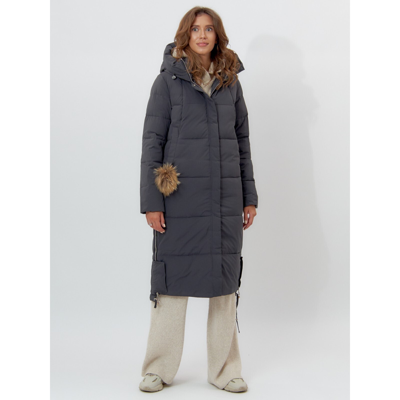 Пальто утеплённое, цвет тёмно-серый, размер 44