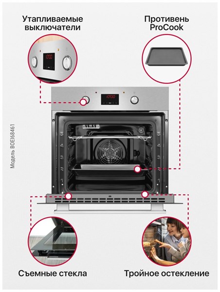 • Режимы нагрева нижний нагрев, верхний нагрев, верхний нагрев + нижний нагрев, гриль + конвекция, большой гриль, конвекция
