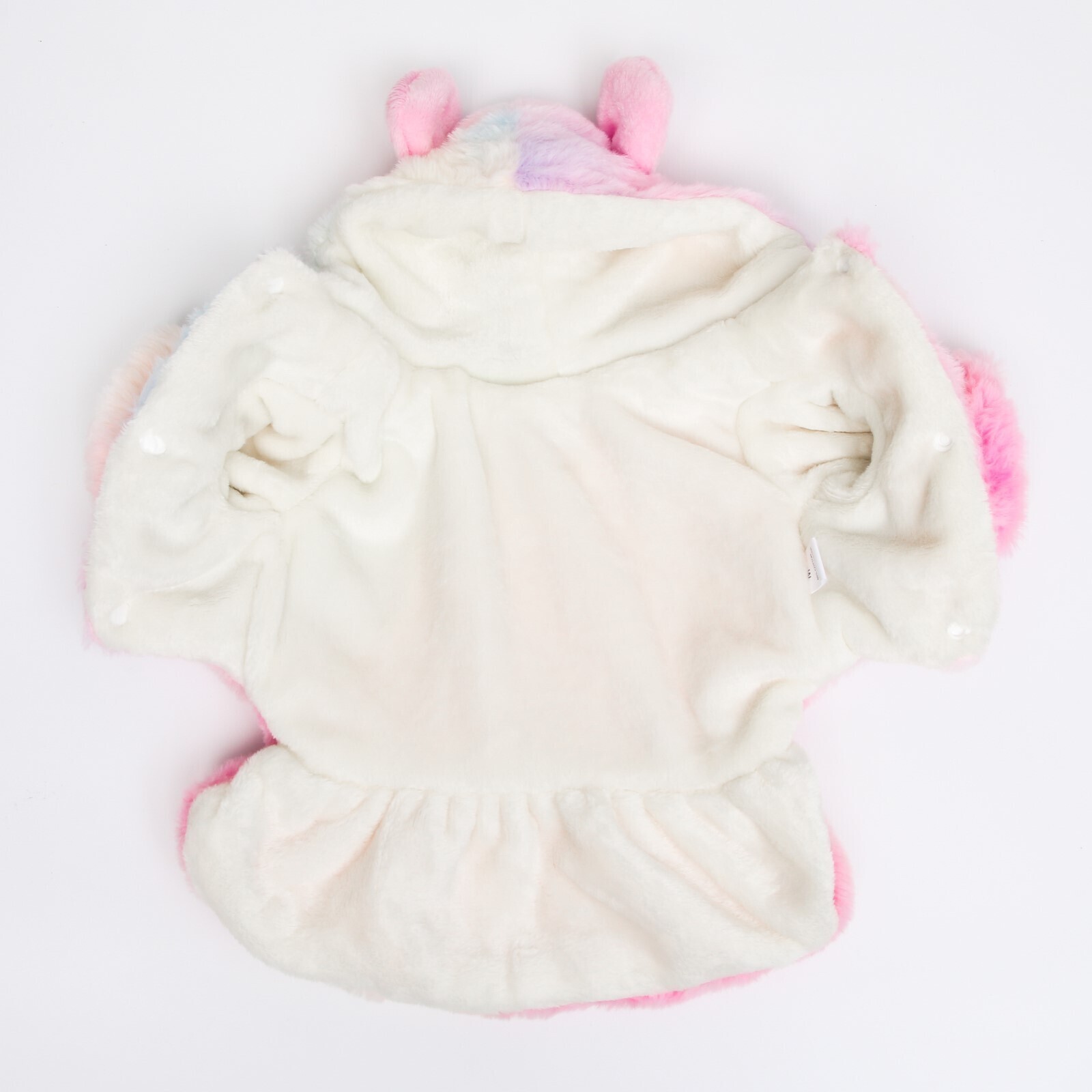 Плюшевый мягкий костюм для мелких и средних пород собак и кошек, идеально подходит в качестве подарка как для ваших любимцев, так и для владельцев питомцев. Отличный вариант для дома, а также для прогулок в сухую погоду. Стильный и оригинальный комбинезон легко одевается и снимается.