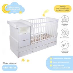 Детская кровать-трансформер "Жираф" на маятнике, цвет белый