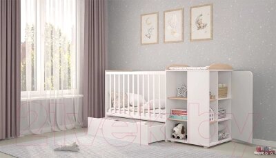 Детская кровать-трансформер Polini Kids French 800 Teddy с комодом