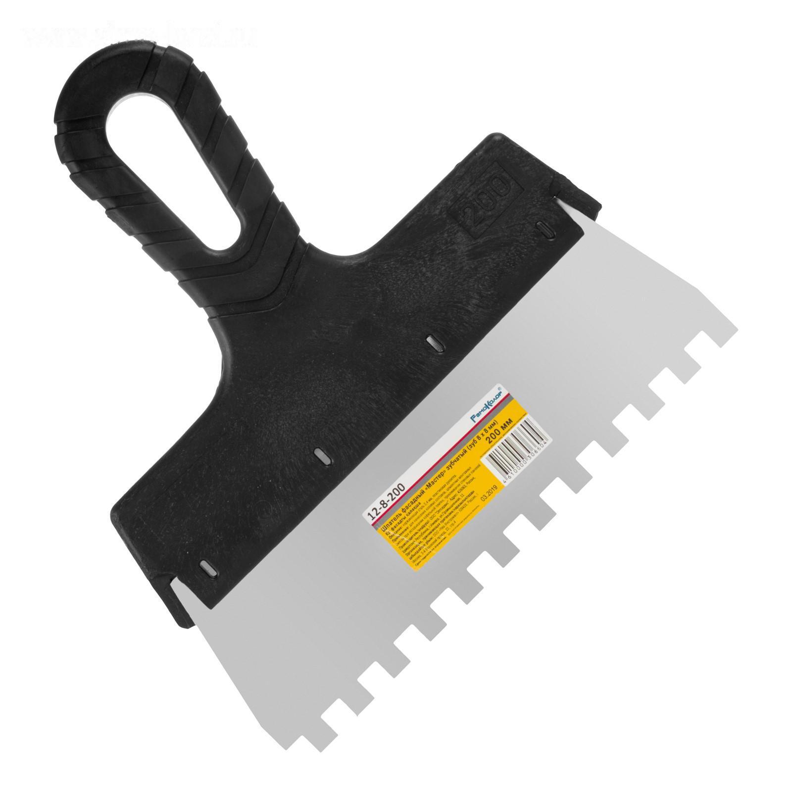 Шпатель фасадный "РемоКолор" 12-8-200, нержавеющая сталь, пластик, зуб 8х8 мм, 200 мм