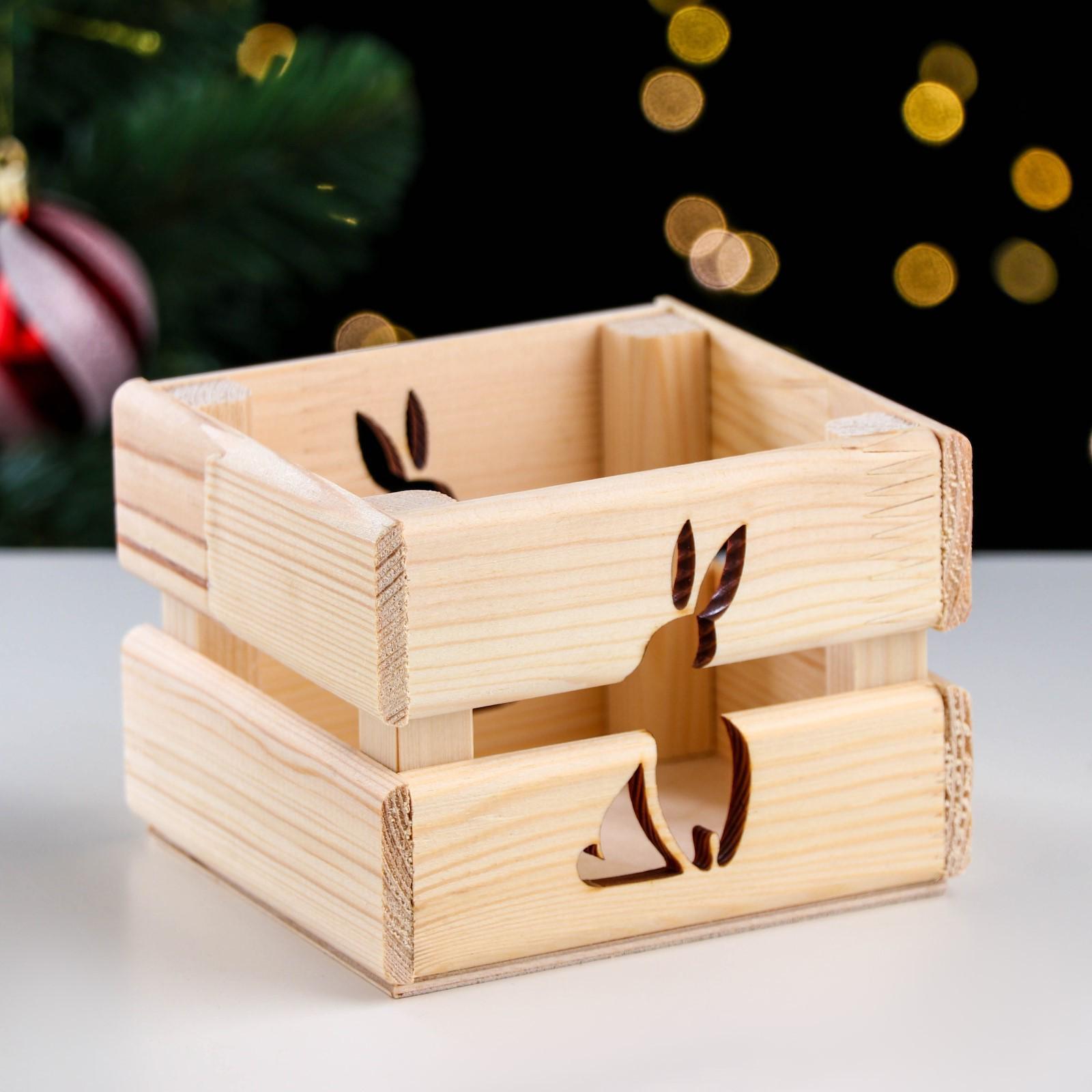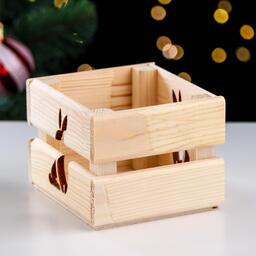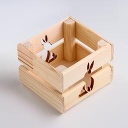 Кашпо деревянное двуреечное "Символ года 2023. Зайка" 12х11х9 см