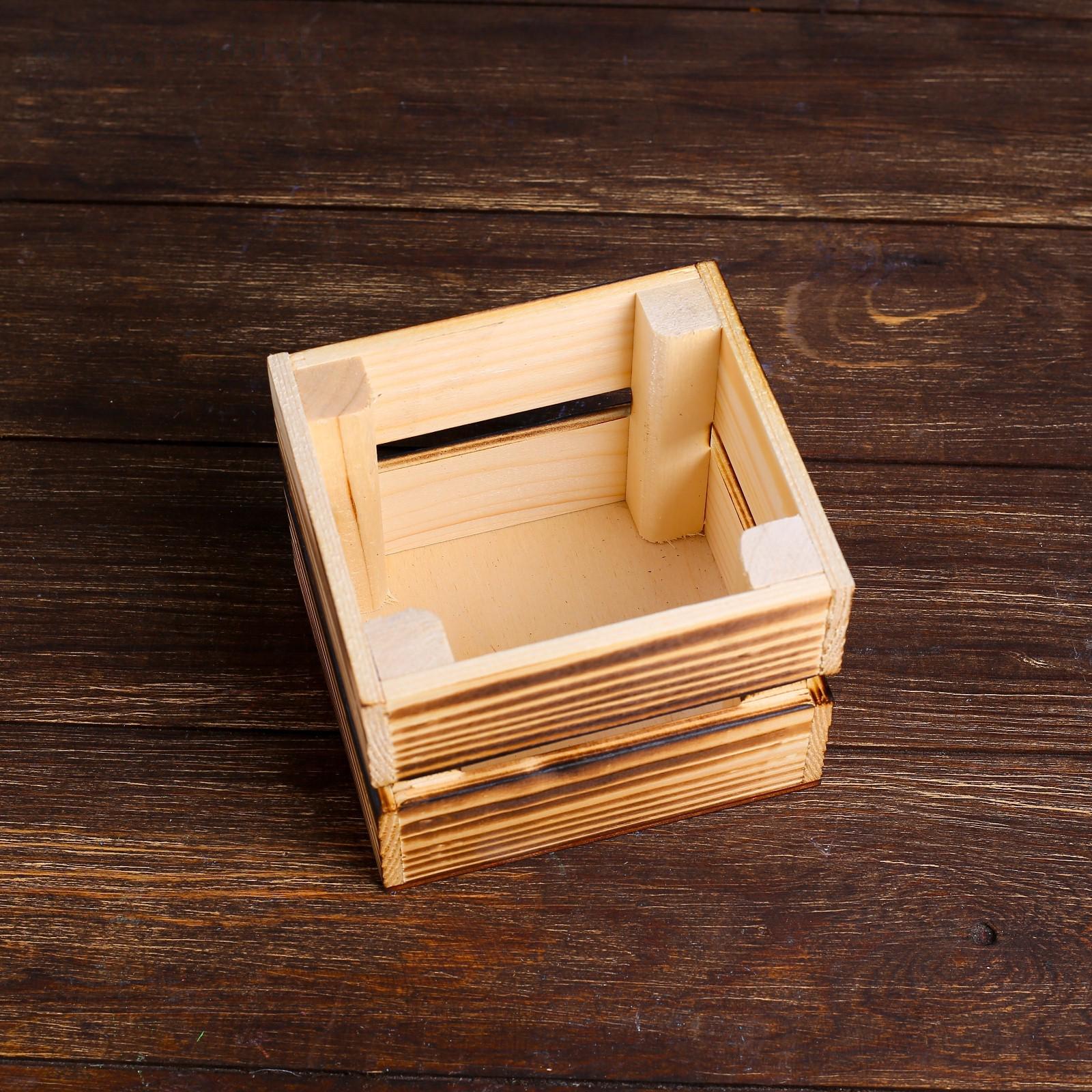 Кашпо деревянное 12×11×9 см "Однушка Лайт", двухреечное, обжиг Дарим Красиво