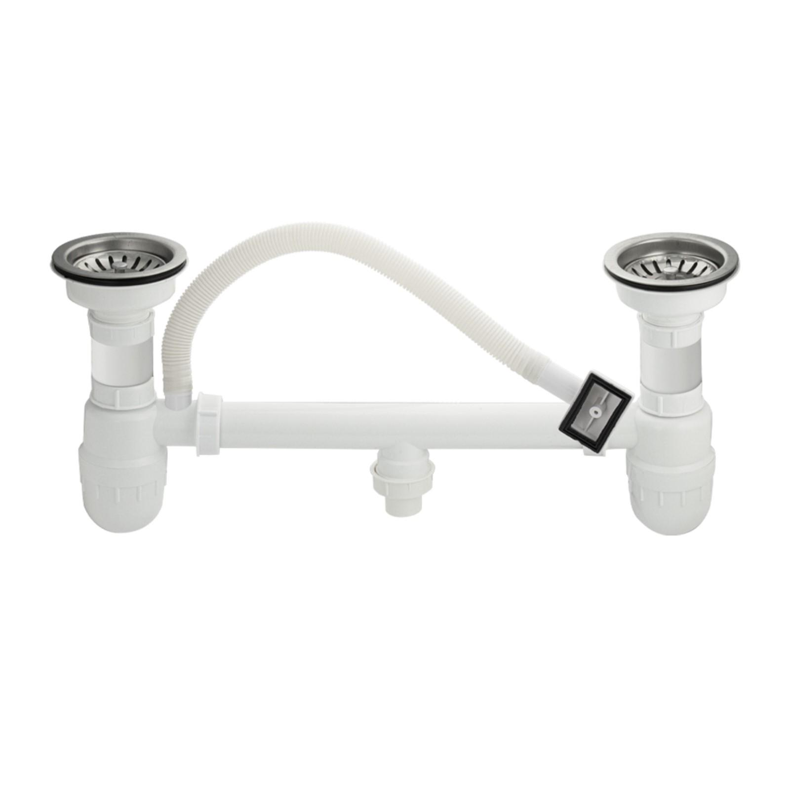 Сифон для мойки "САНАКС" 4010, двойной, большая горловина, с переливом