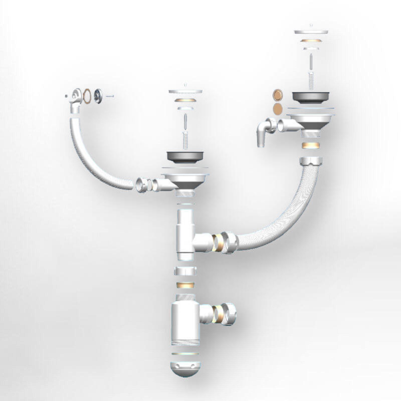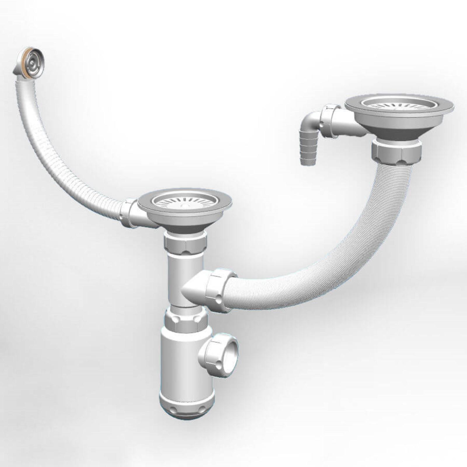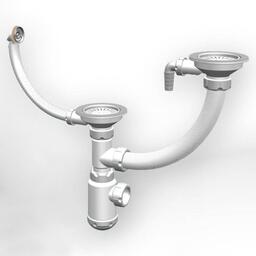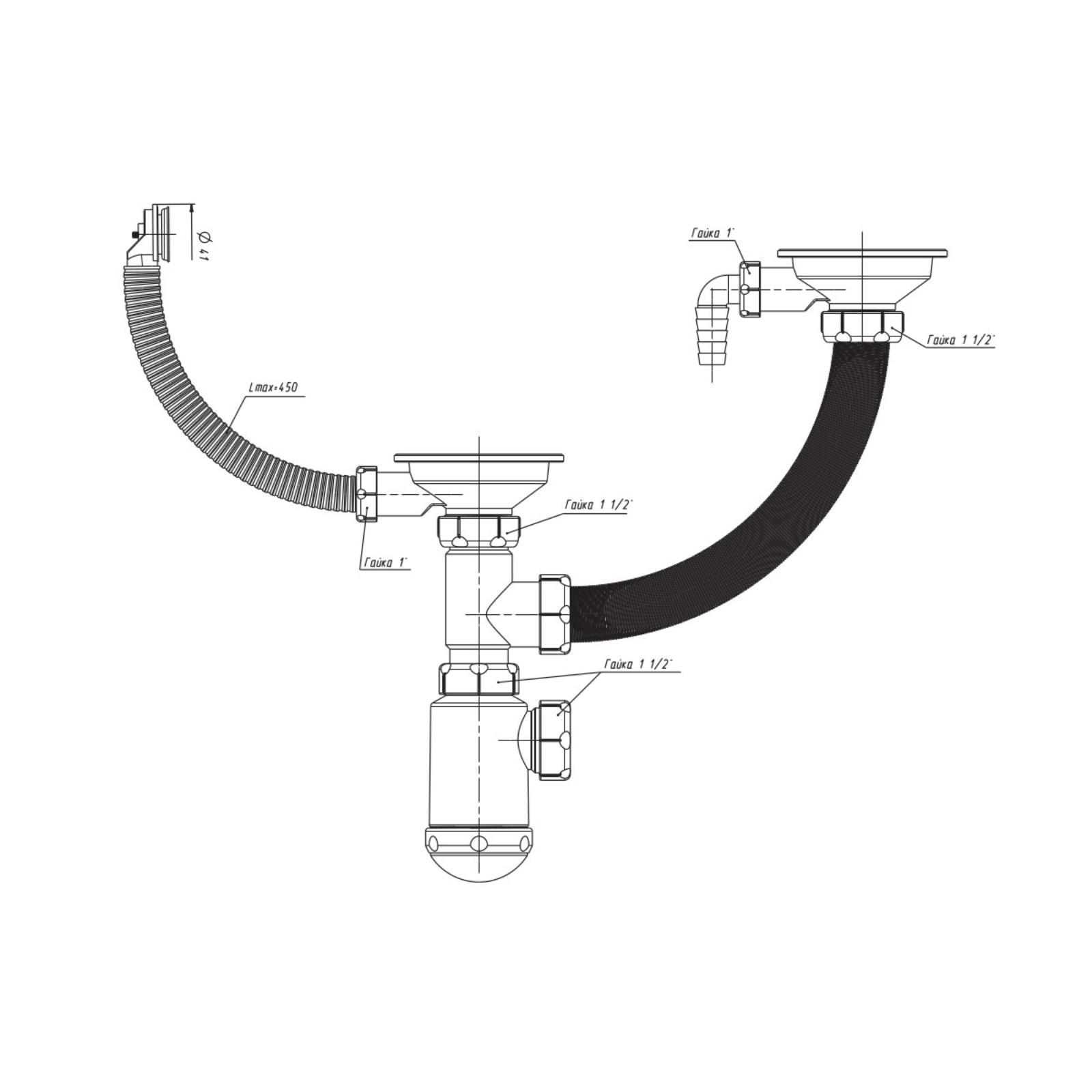 Сифон для мойки Grand П10585, 3 1/2", двойной, с круглым переливом, винтом и отводом