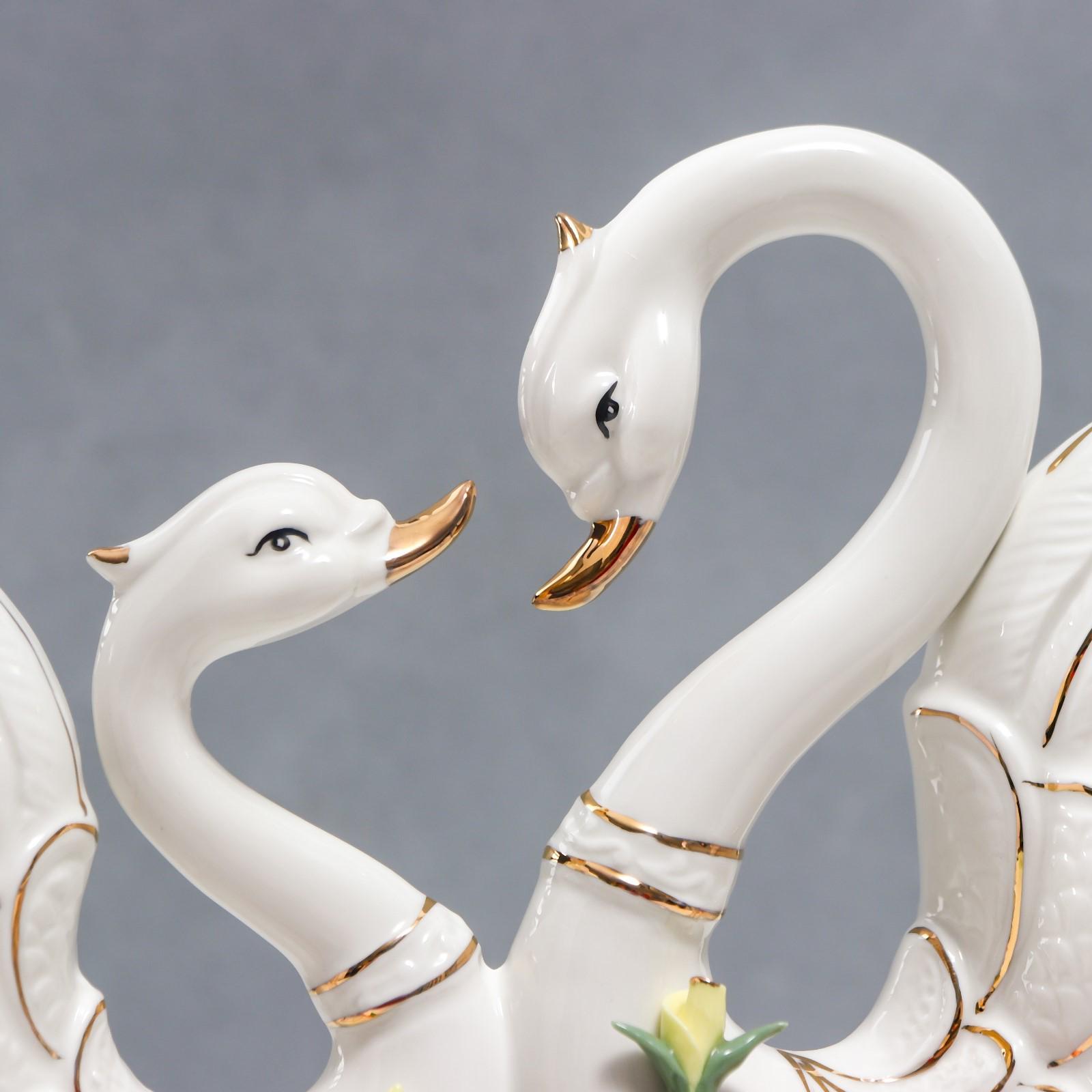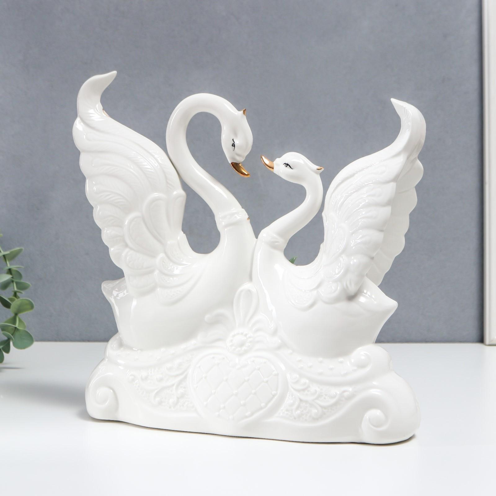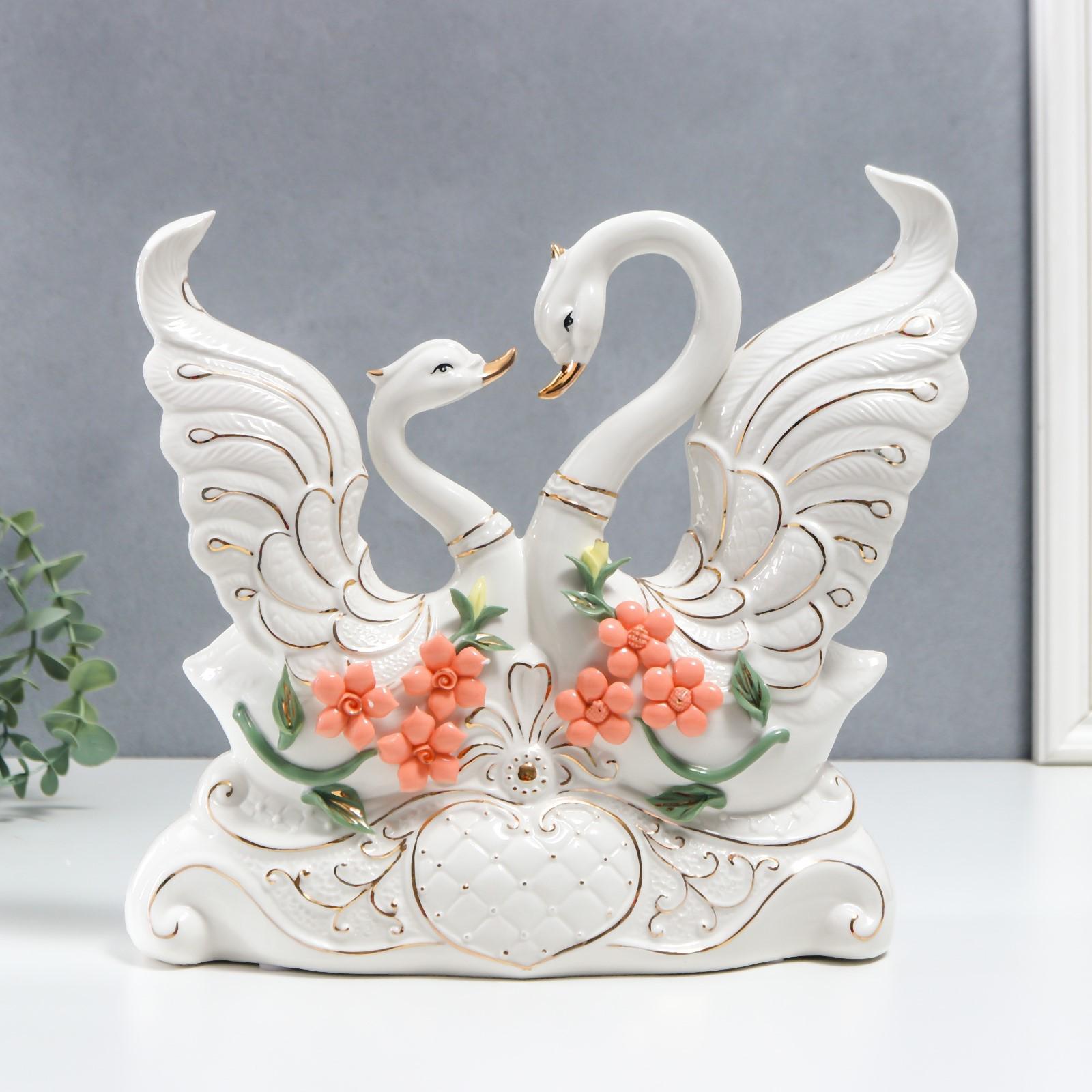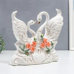Сувенир керамика "Белые лебеди с сердцем в цветах" 25,5х9х27 см