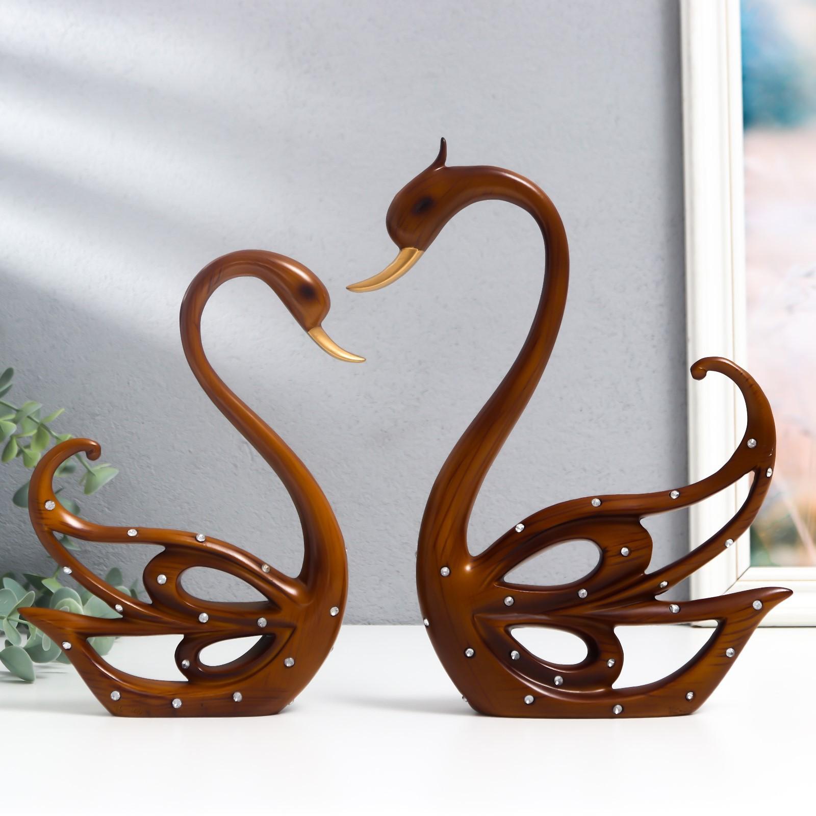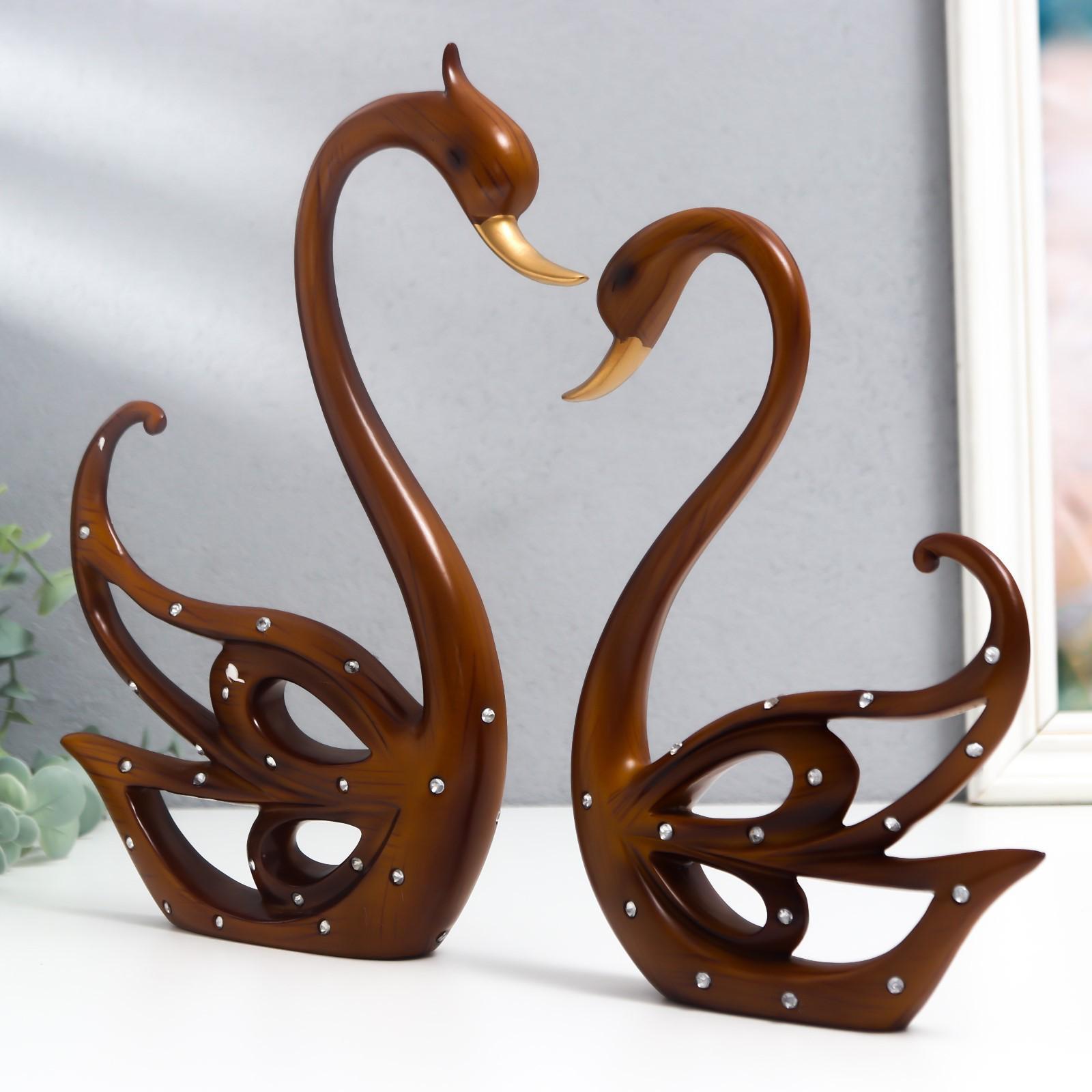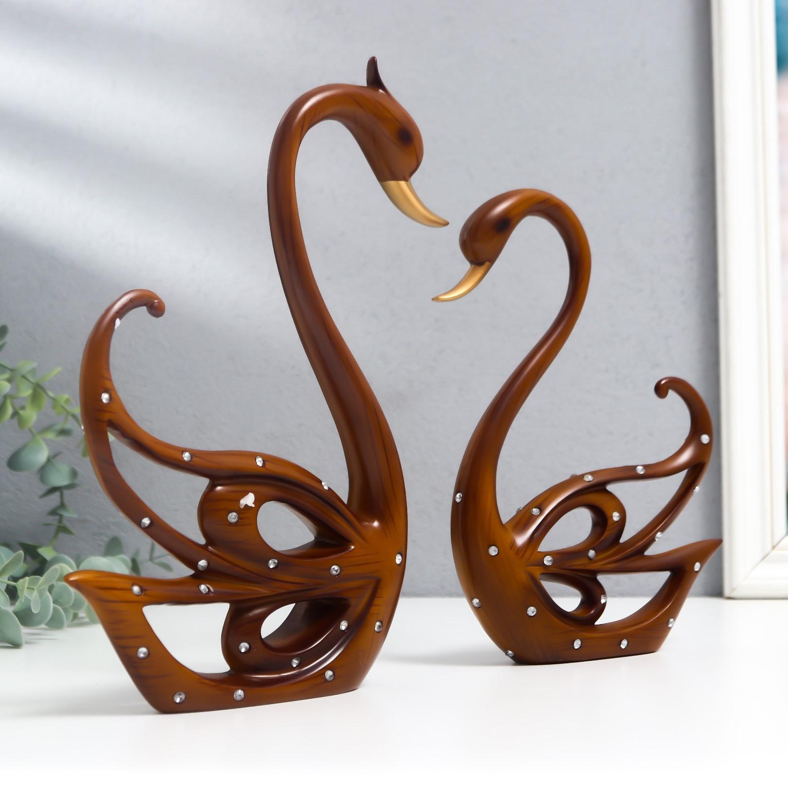 Сувенир полистоун под дерево "Лебеди" стразы набор 2 шт 20х14,5х2,5 25х16х3 см