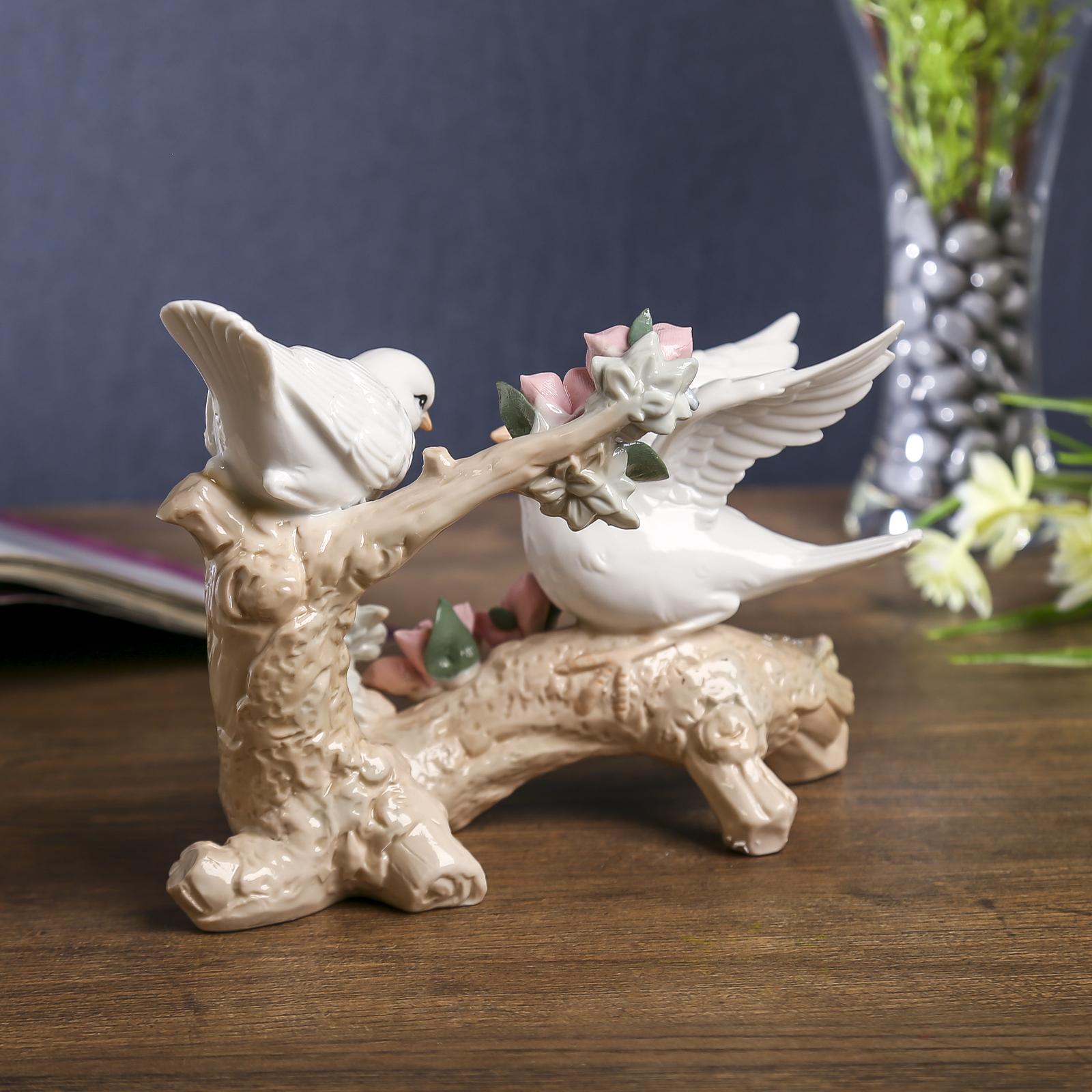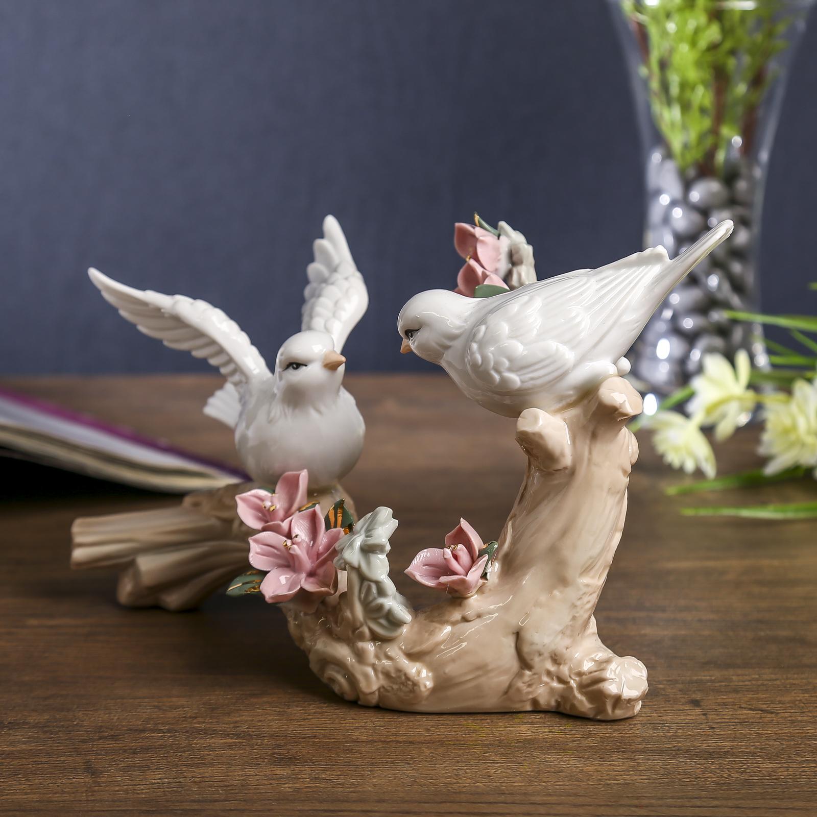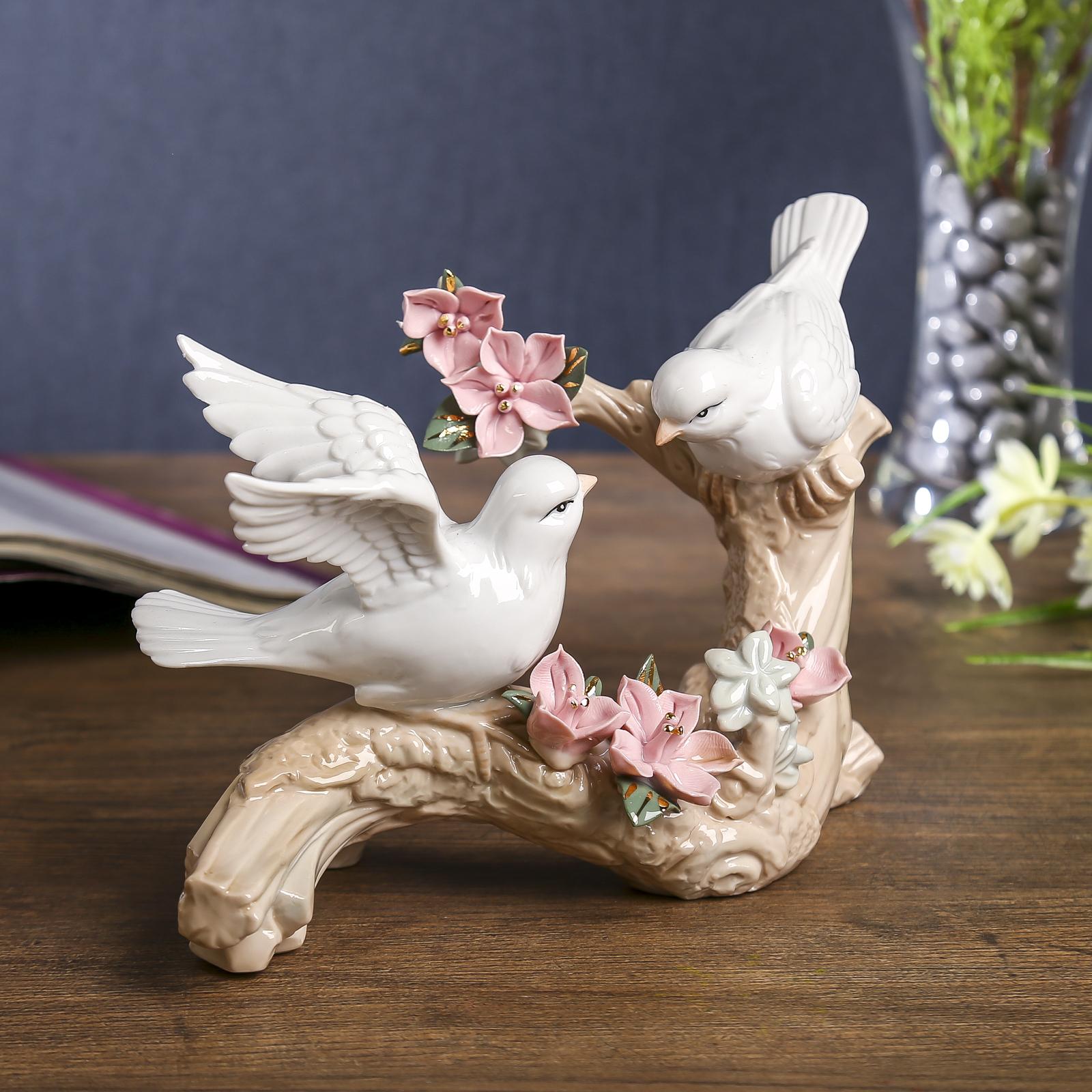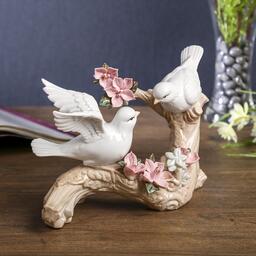 Сувенир керамика "Две птички на ветке с цветами" 14х21х9 см