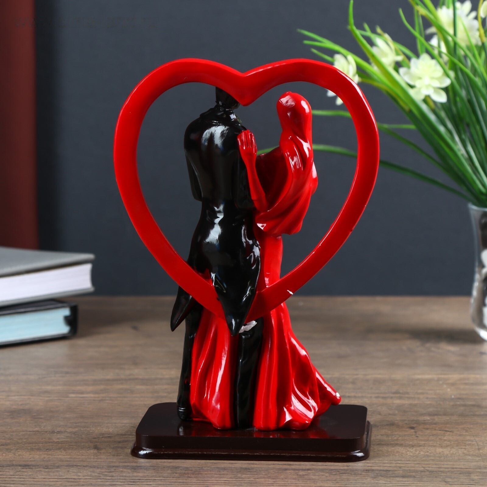 Сувенир полистоун "Объятия у сердца" стразы, красно-чёрная 23х10х14 см
