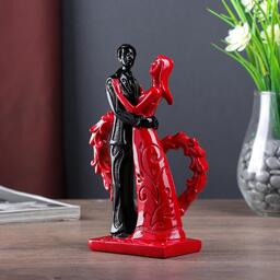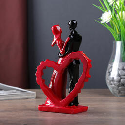 Сувенир полистоун "Молодожёны у сердца" красно-чёрный 18,7х11,8х5,7 см