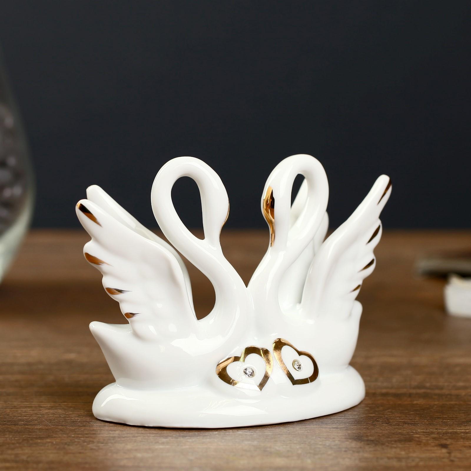 Сувенир под фарфор "2 лебедя изящество" стразы 10х5х9 см