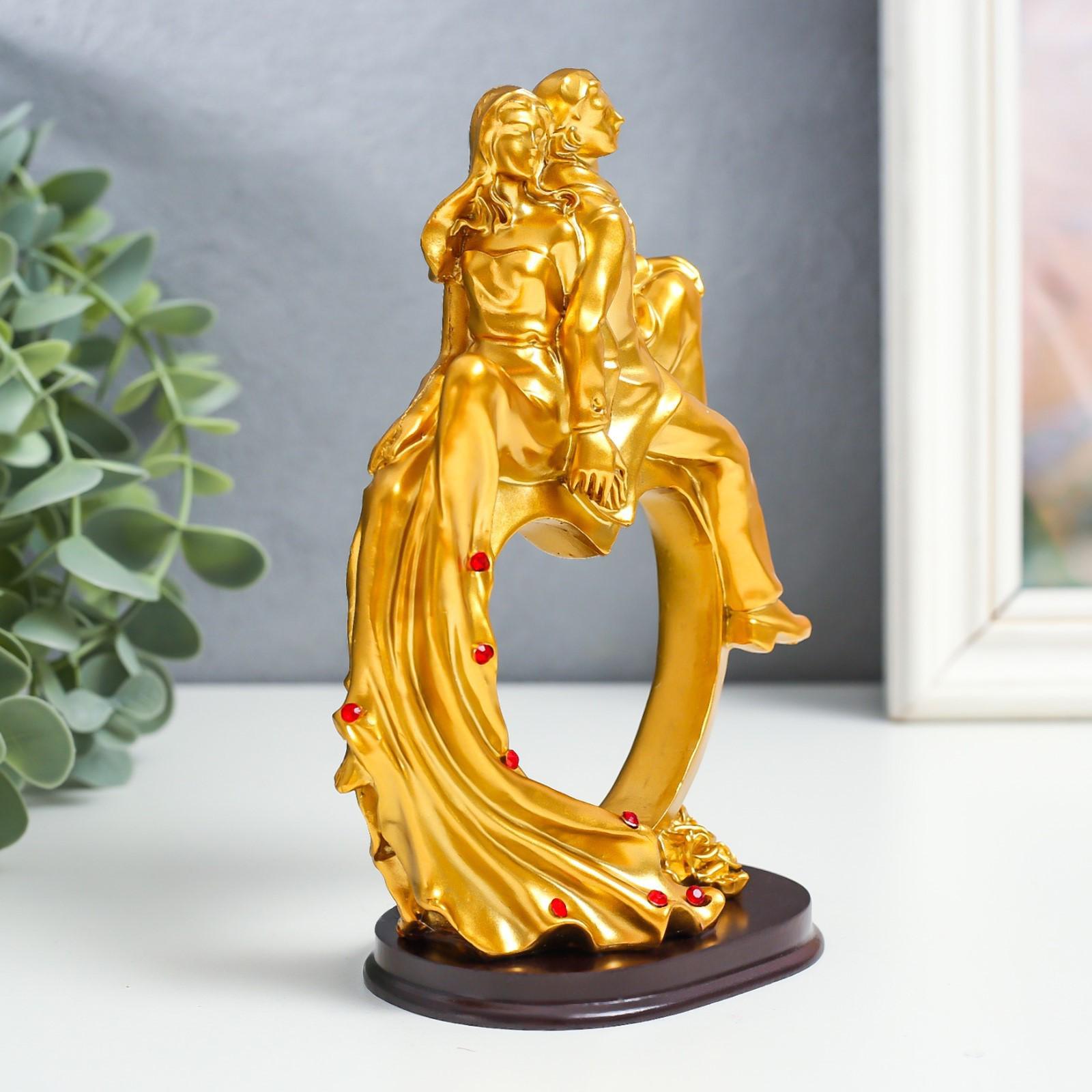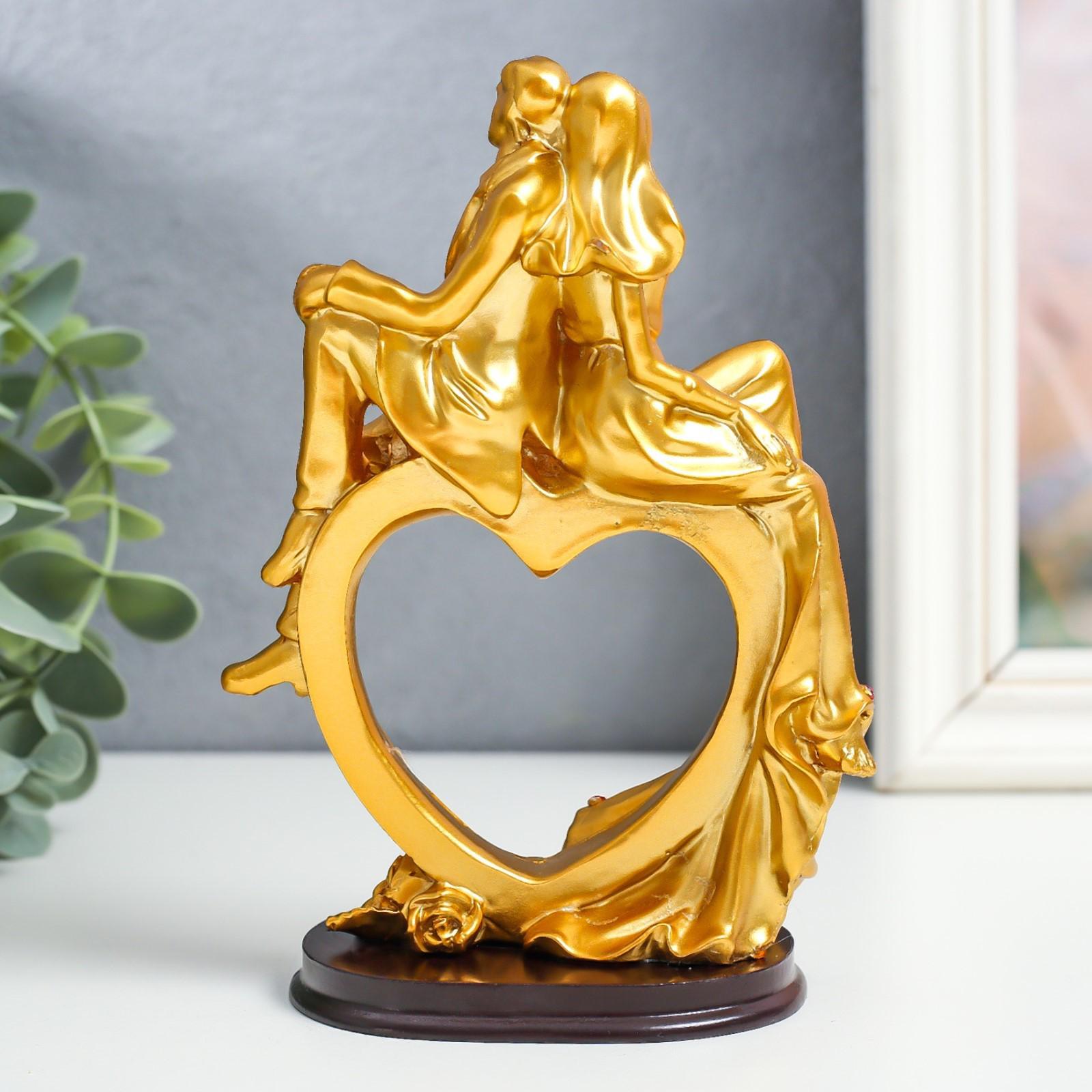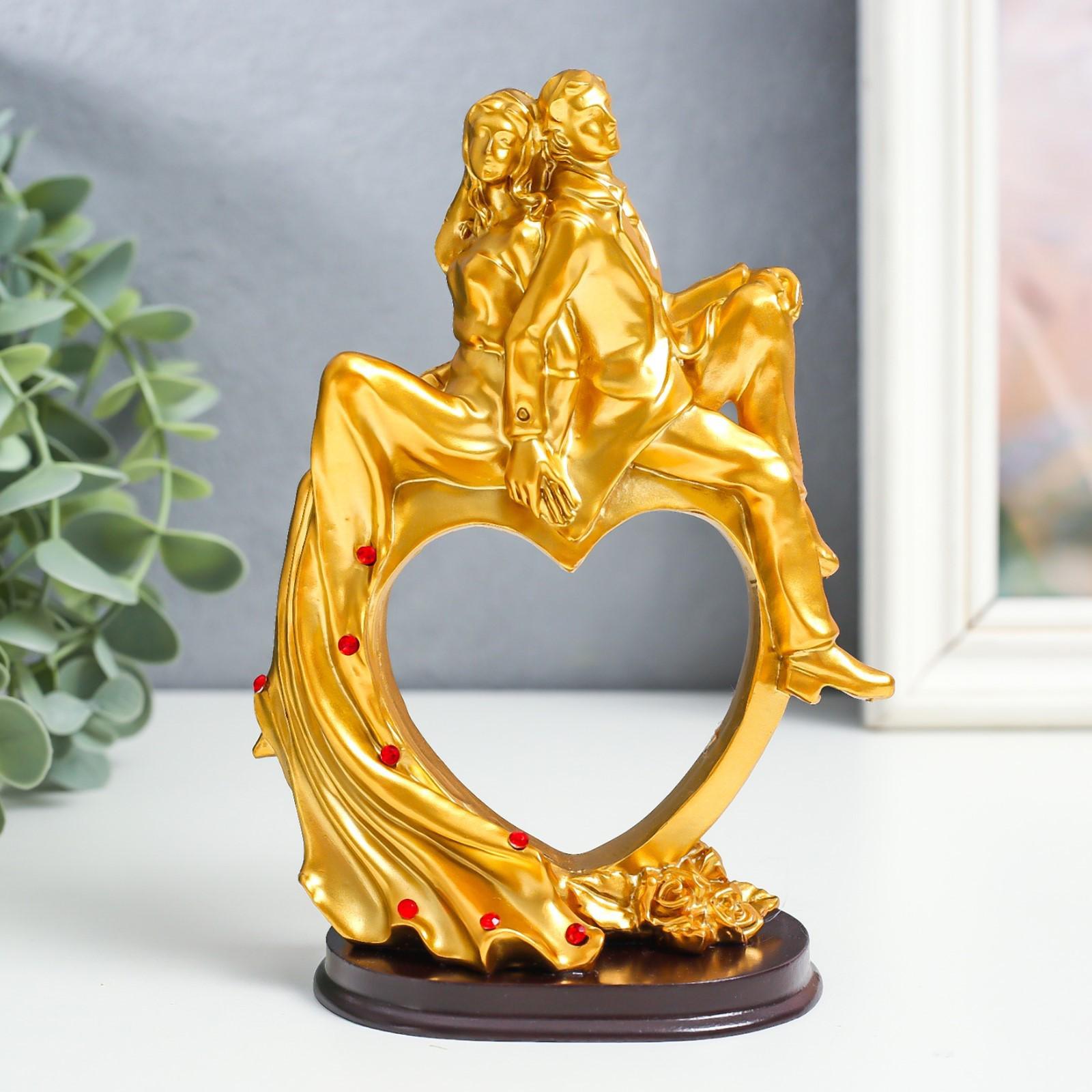 Сувенир полистоун "Влюблённые на сердце" золото с красным 15,5х10,5х6 см
