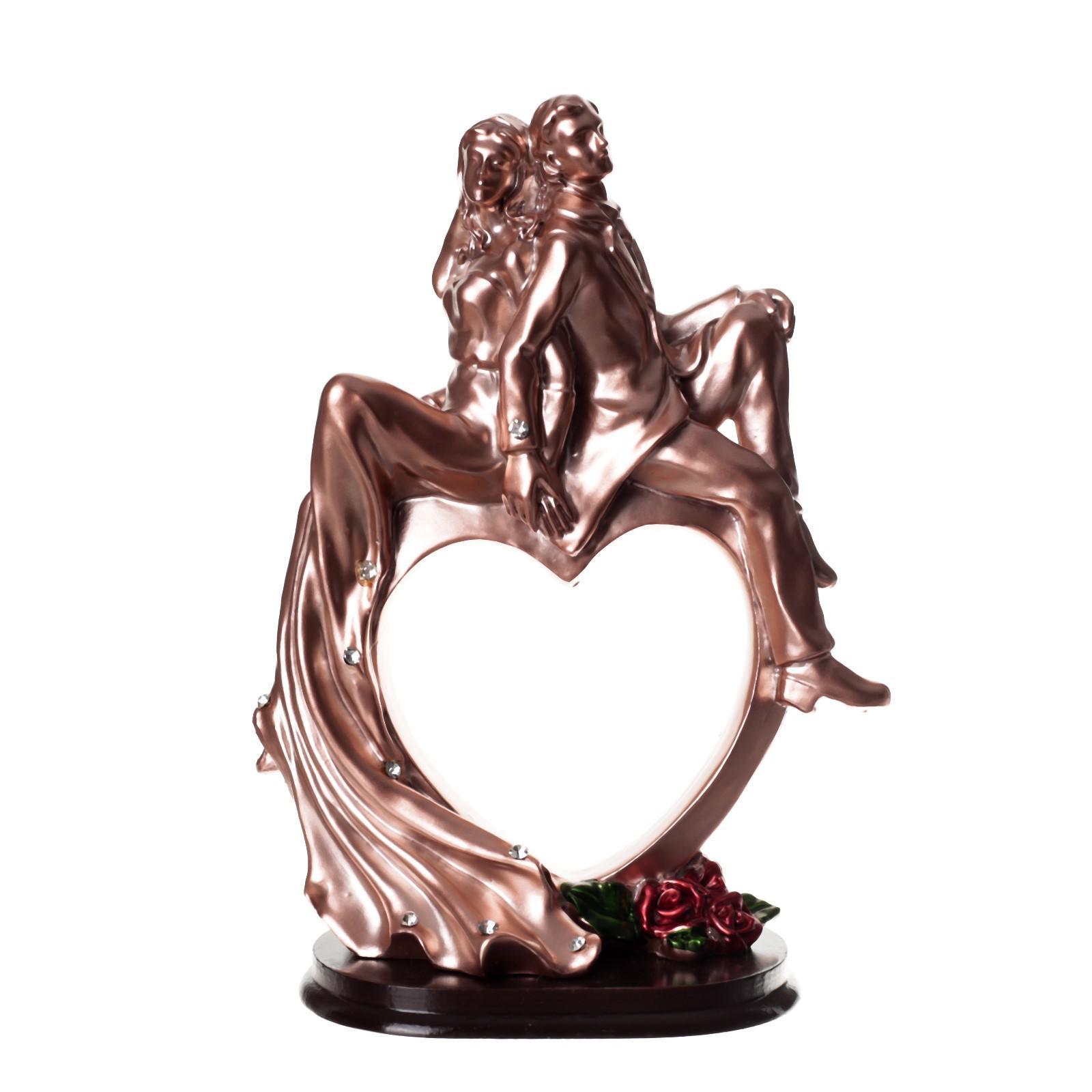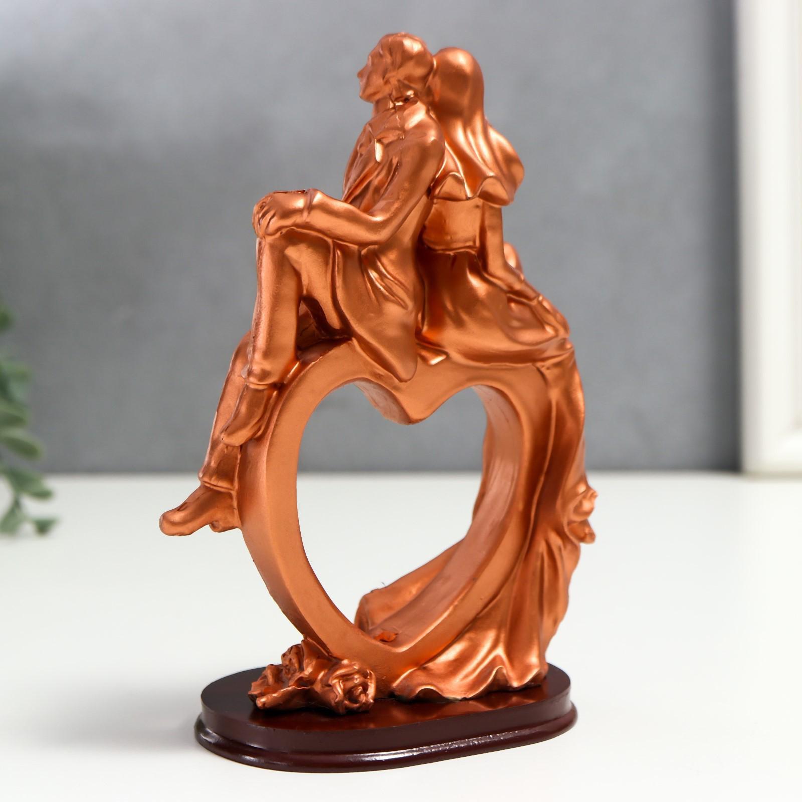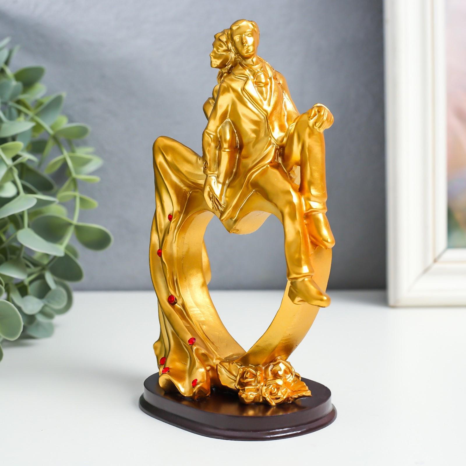 Сувенир полистоун "Влюблённые на сердце" золото с красным 15,5х10,5х6 см