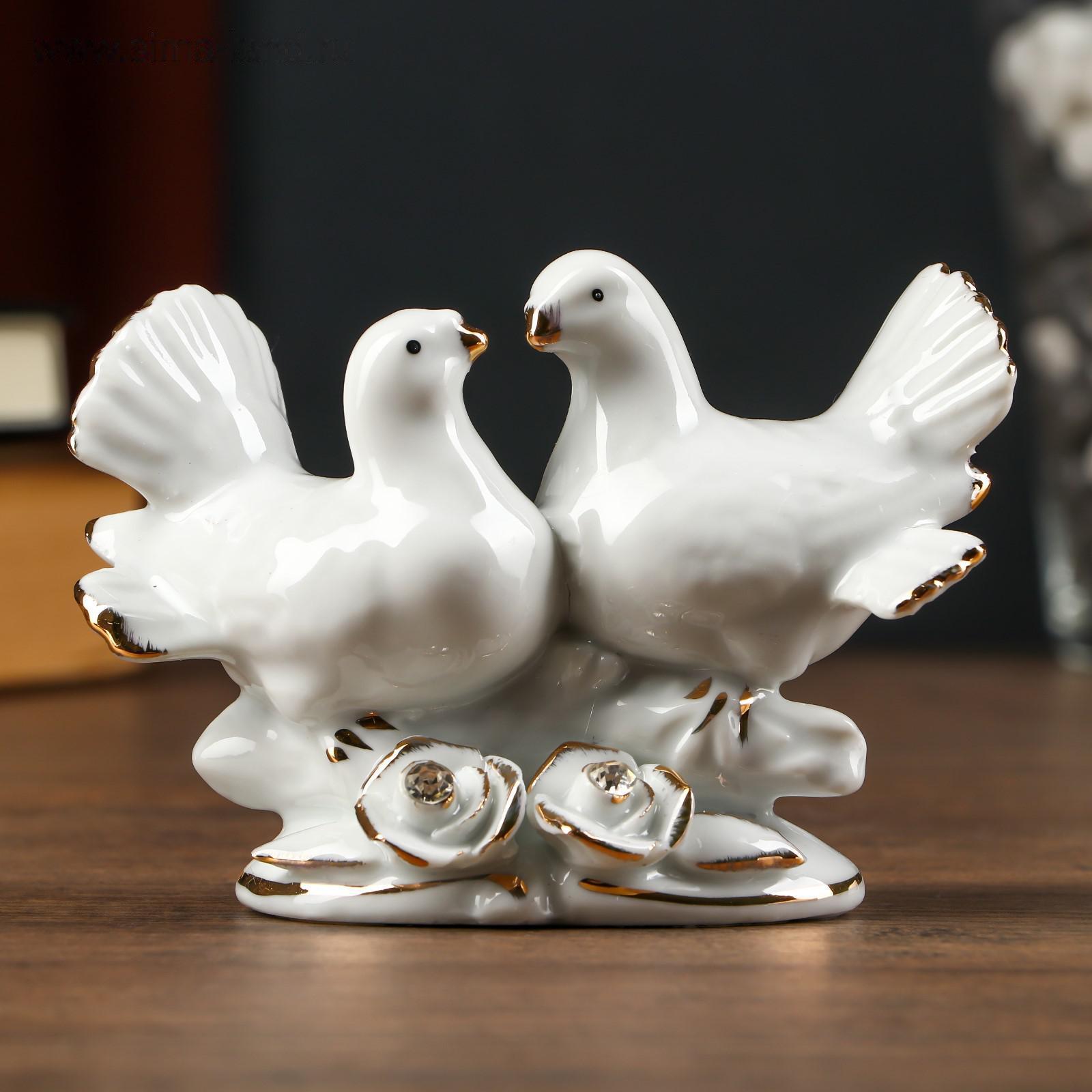 Сувенир "2 белых голубя" со стразами 9х12 см