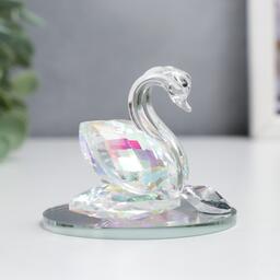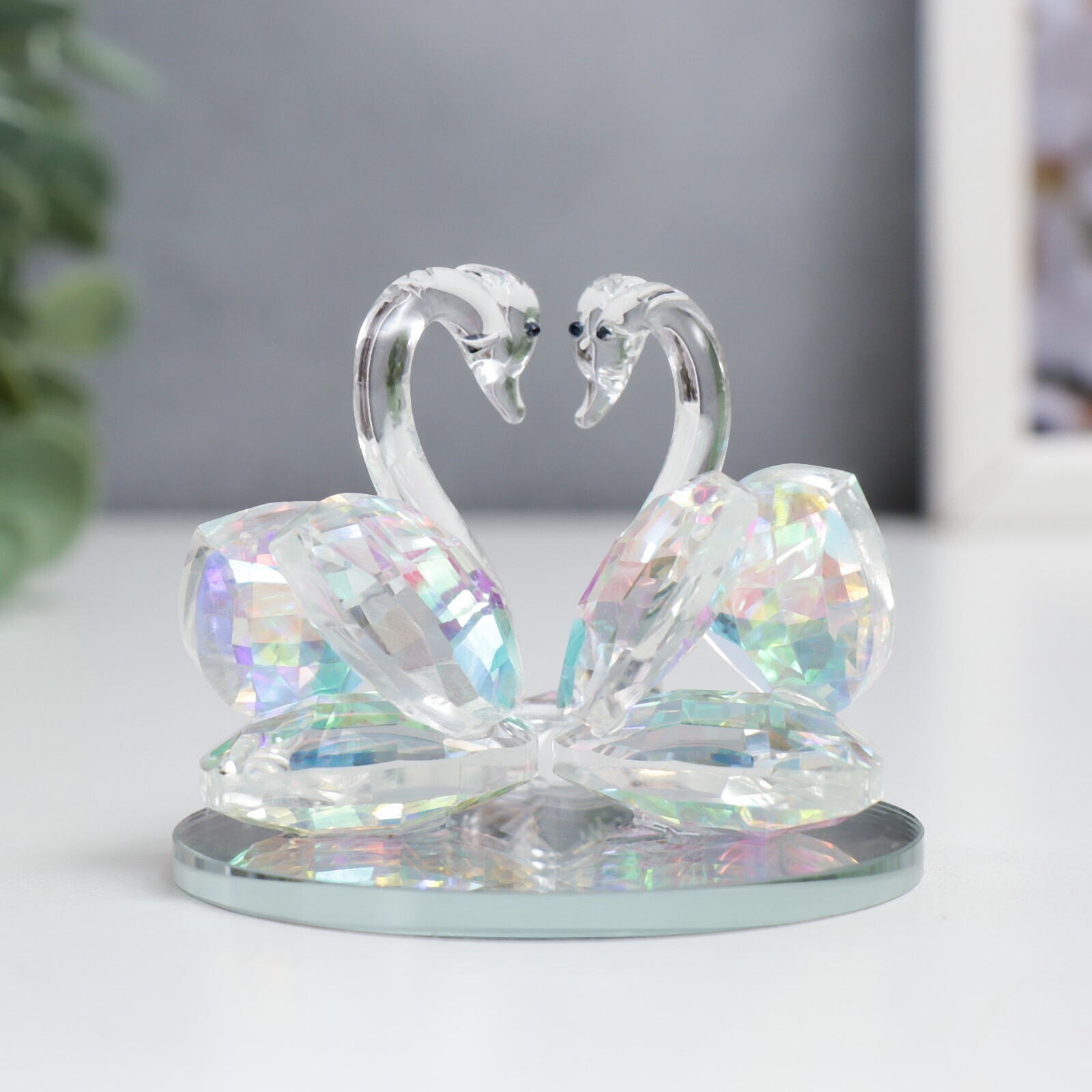 Сувенир стекло "Лебеди с бриллиантом" прозрачная голография 6,5х5х5 см