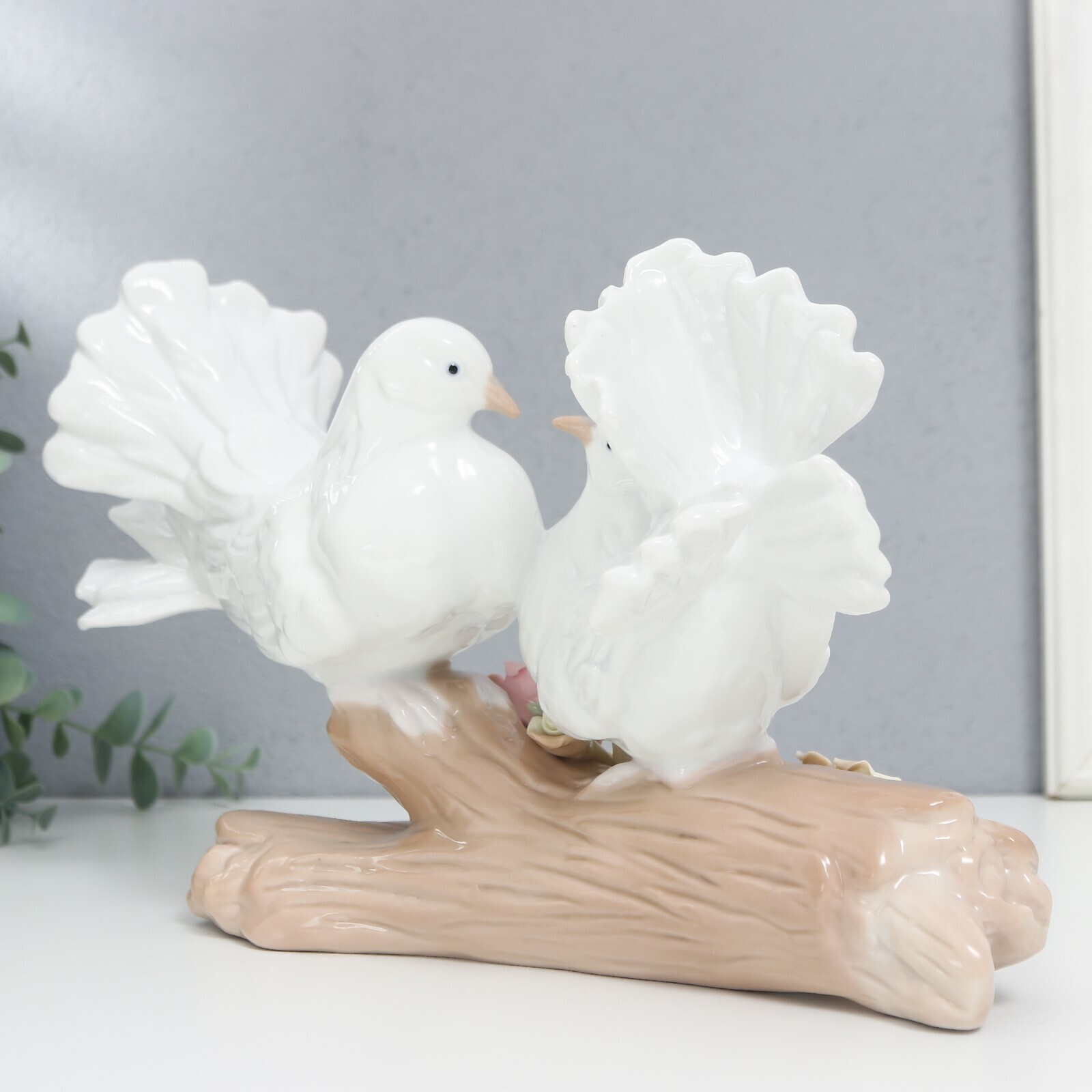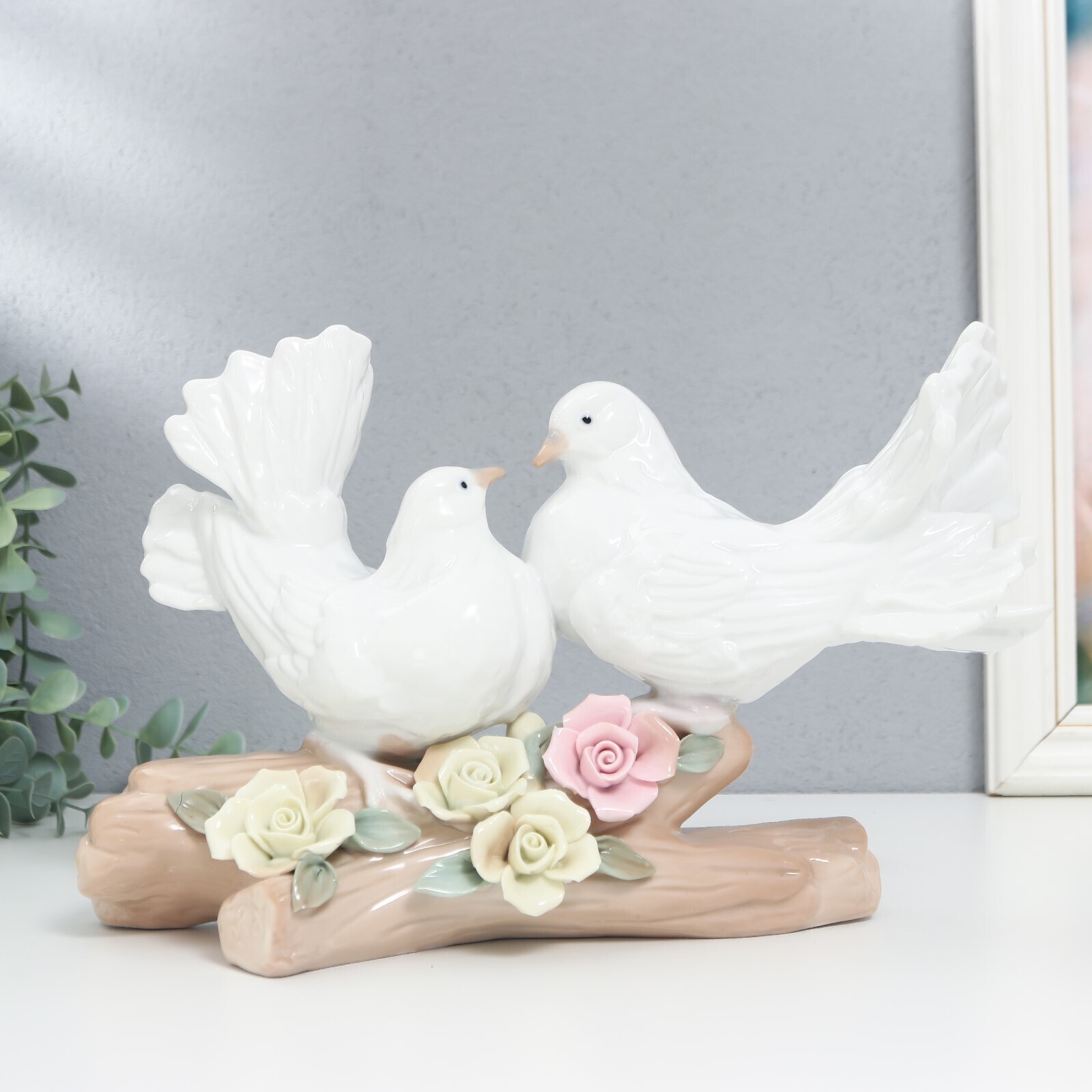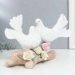 Сувенир керамика "Два голубя на ветке с цветами" 28 см