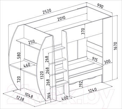 • Высота кровати 167 см