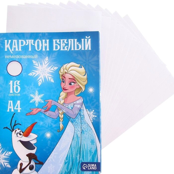 Картон белый немелованный "Эльза и Олаф", А4, 16 л., Холодное сердце, 220 г/м2