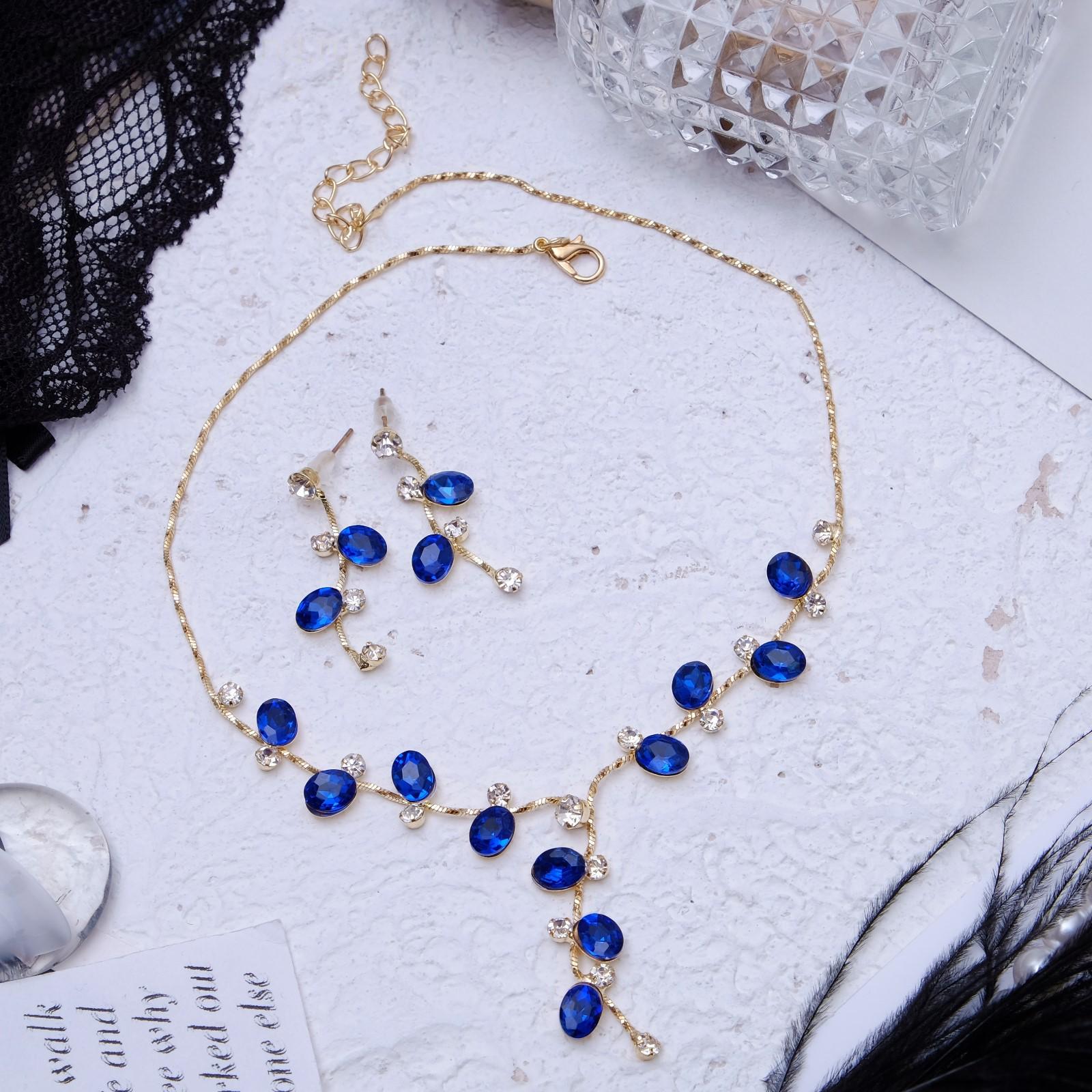 Набор 2 предмета: серьги, колье "Изумление" цветение, цвет сине-белый в золоте, 42см