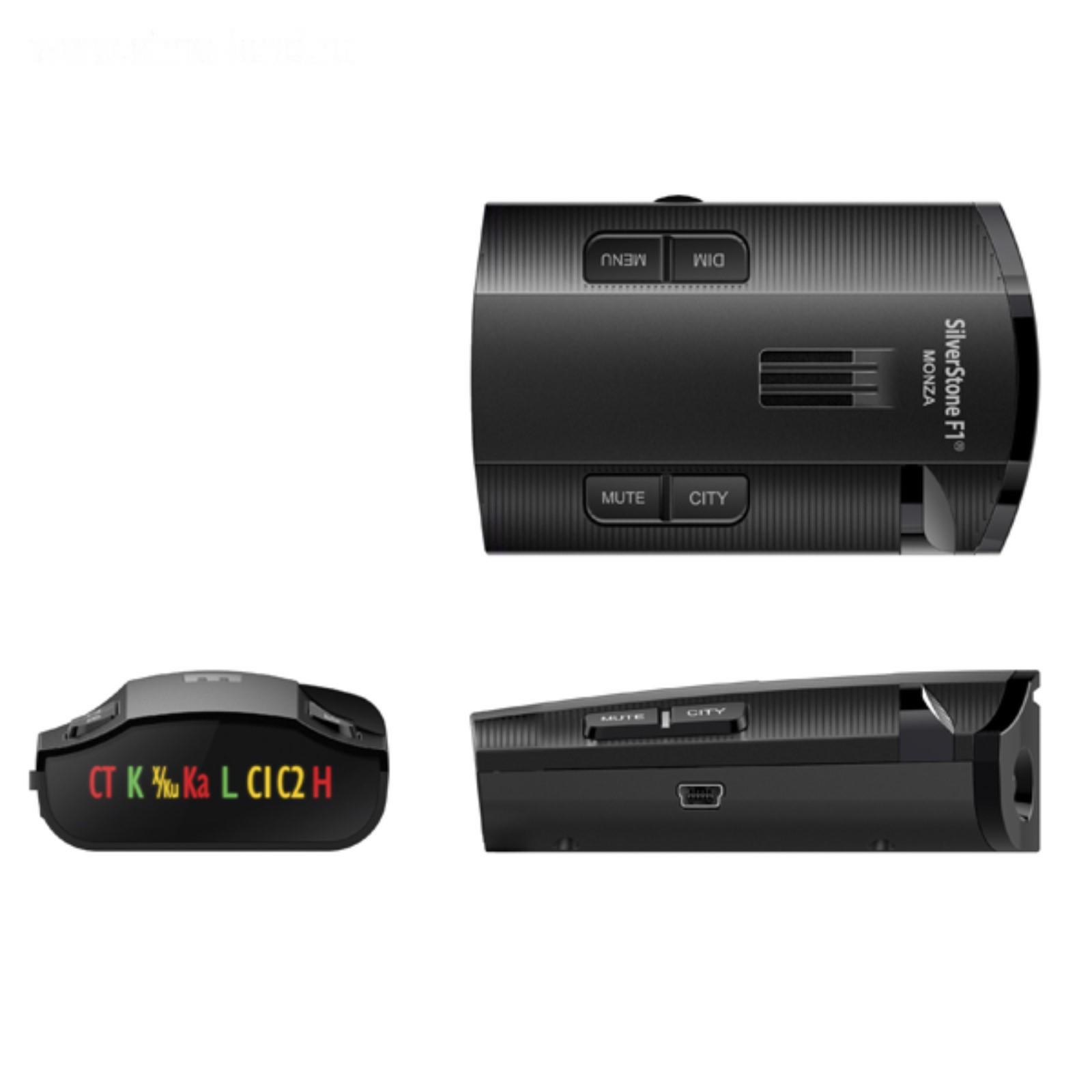 В новом радар-детекторе SilverStone F1 Monza GS, как и в его прототипе Monaco GS, работают G-сигнатуры - это данные о полицейских радарах и иных системах контроля дорожного движения. C помощью голосового оповещения и индикации на дисплее устройство предоставляет пользователю исчерпывающую информацию о том, каким образом на участке контролируется скорость движения или соблюдение других правил дорожного движения. Радар-детектор оповещает о: