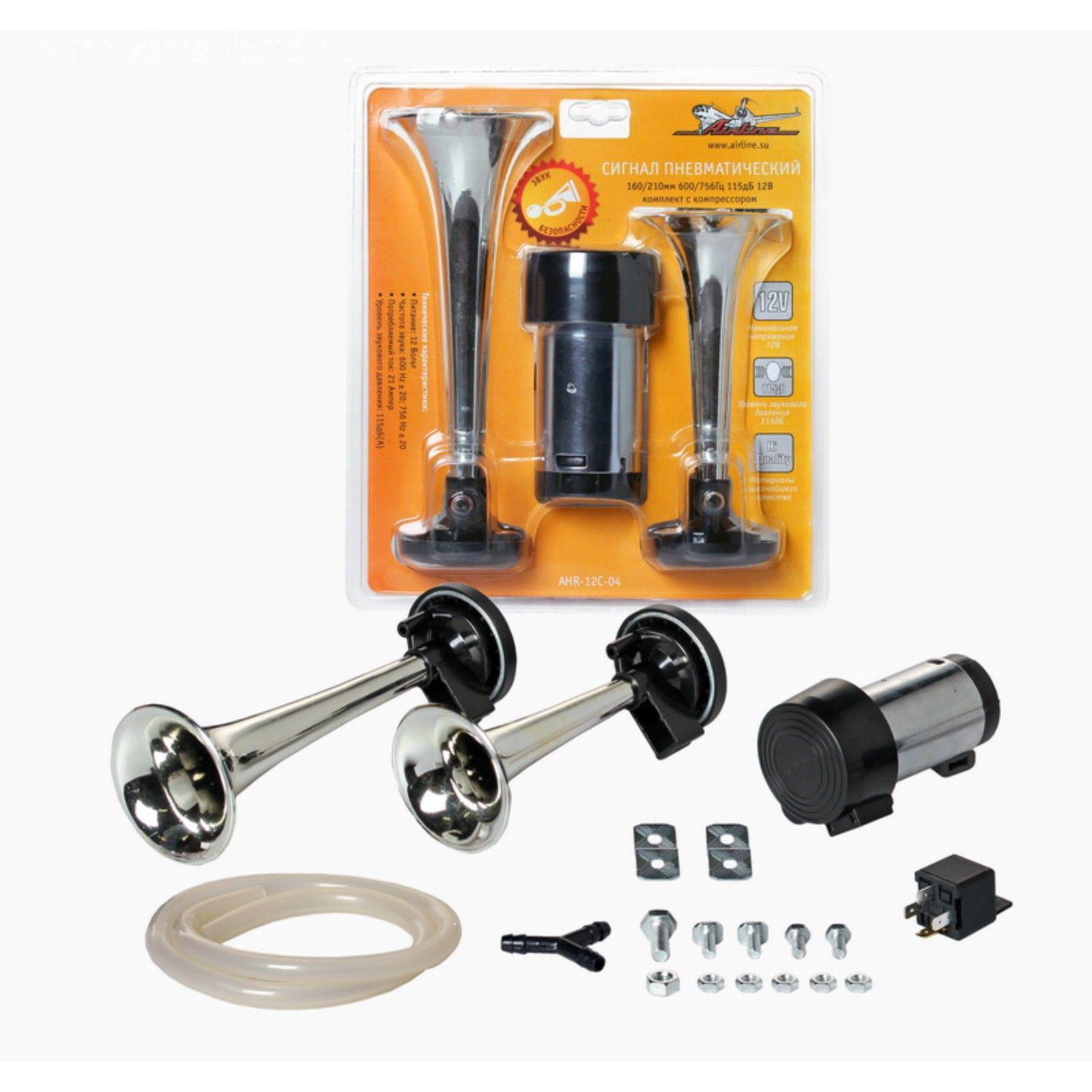 Сигнал звуковой пневматический 160/210мм 115дБ 12В с компрессором Airline AHR-12C-04