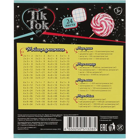 Тетрадь в клетку 24 листа TIK TOK GIRL NS-24-69297-TT