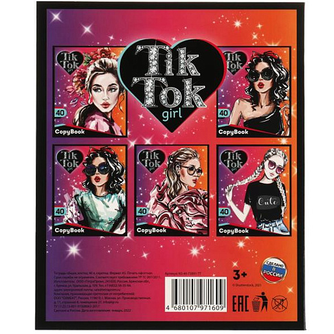 Тетрадь в клетку 40 листов TIK TOK GIRL NS-40-73891-TT