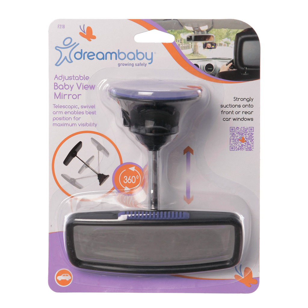 Регульоване дзеркало Dreambaby Deluxe для спостереження за дитиною спрощує перевірку малюків на задньому сидінні.