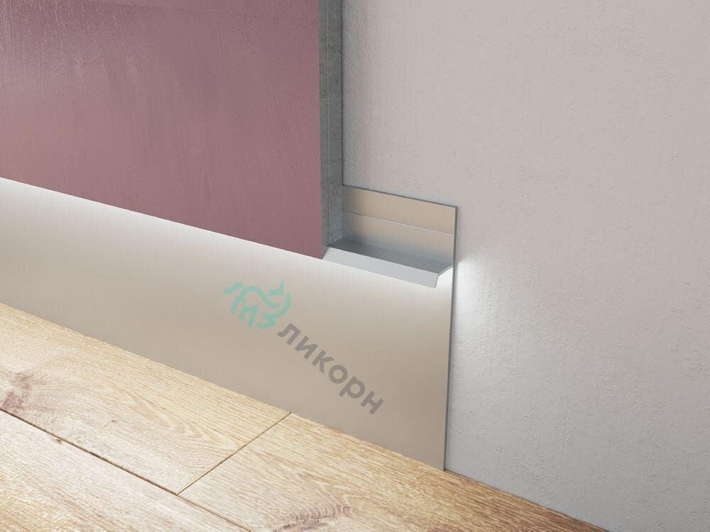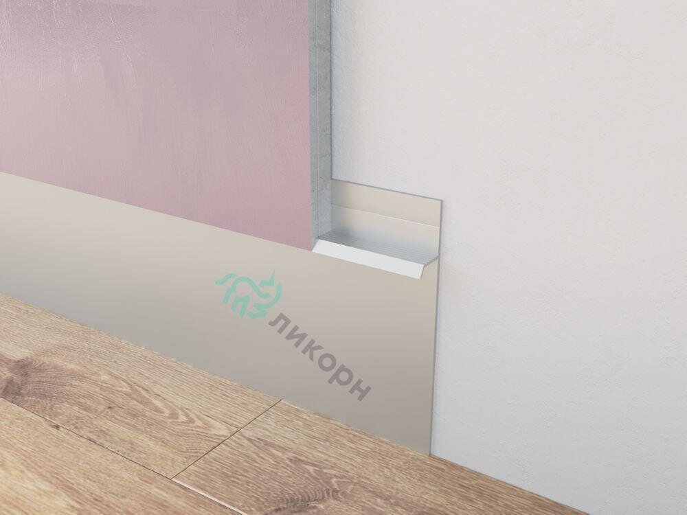 Плинтус скрытый / теневой профиль С-02.2 Ликорн серебро глянец 104,6мм