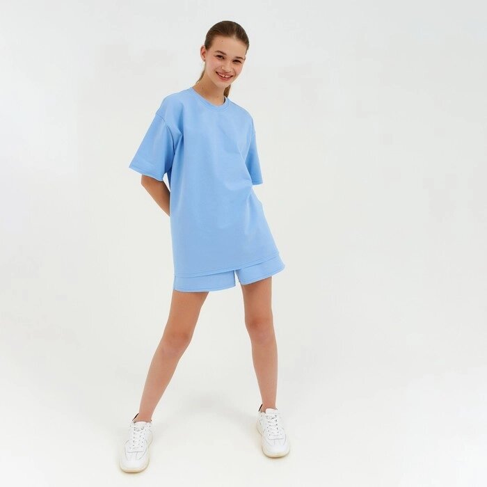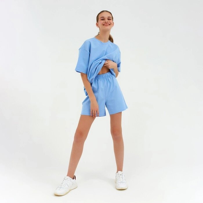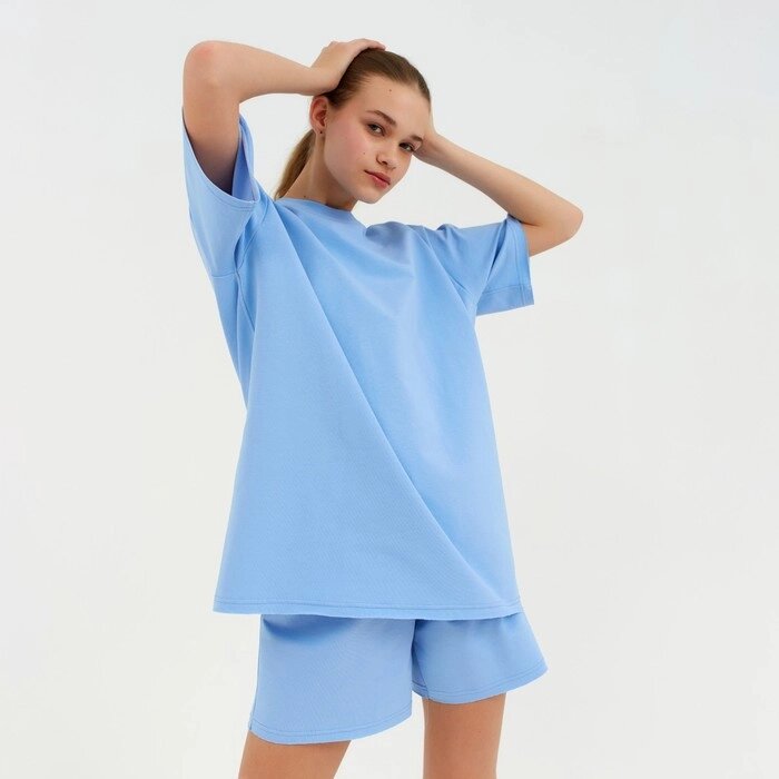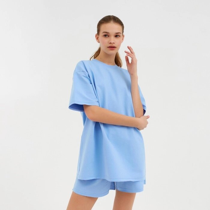 Комплект (футболка, шорты) женский MINAKU: Casual Collection, цвет голубой, размер 46