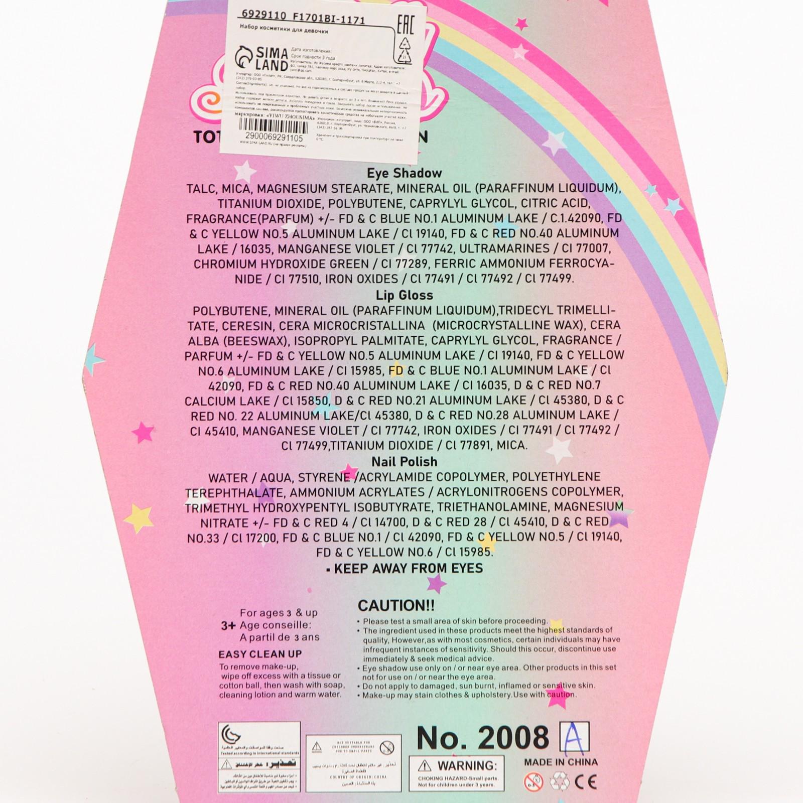 Детская косметика позволит ребёнку устраивать эксперименты со своим стилем. Набор поможет девочке подобрать оптимальные варианты для вечерних и дневных образов. Косметика без труда смывается водой или с помощью ватного диска и безопасна для детской кожи.