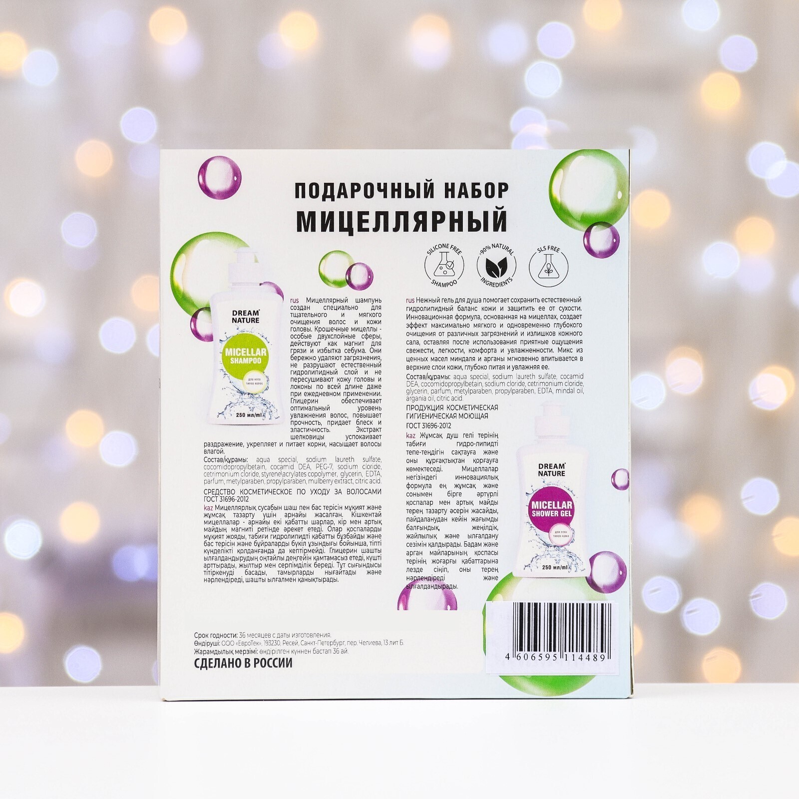 Подарочный набор мицеллярный DreamNature:шампунь для волос, 250 мл+ гель для душа, 250 мл