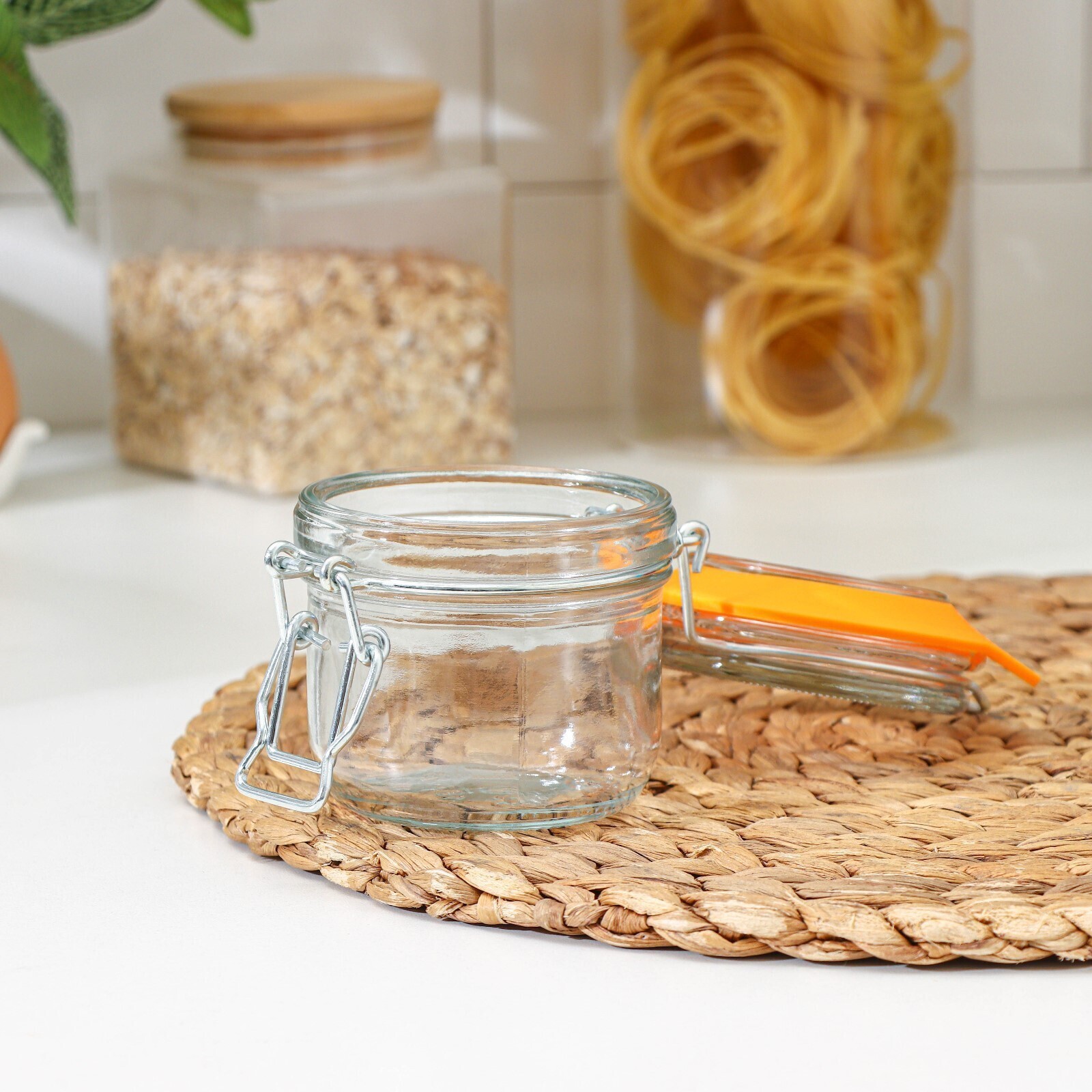 Силиконовая прослойка позволяет крышке плотно прилегать к банке, исключая возможные протекания жидкостей. Удобный металлический замок легко открывается и закрывается.