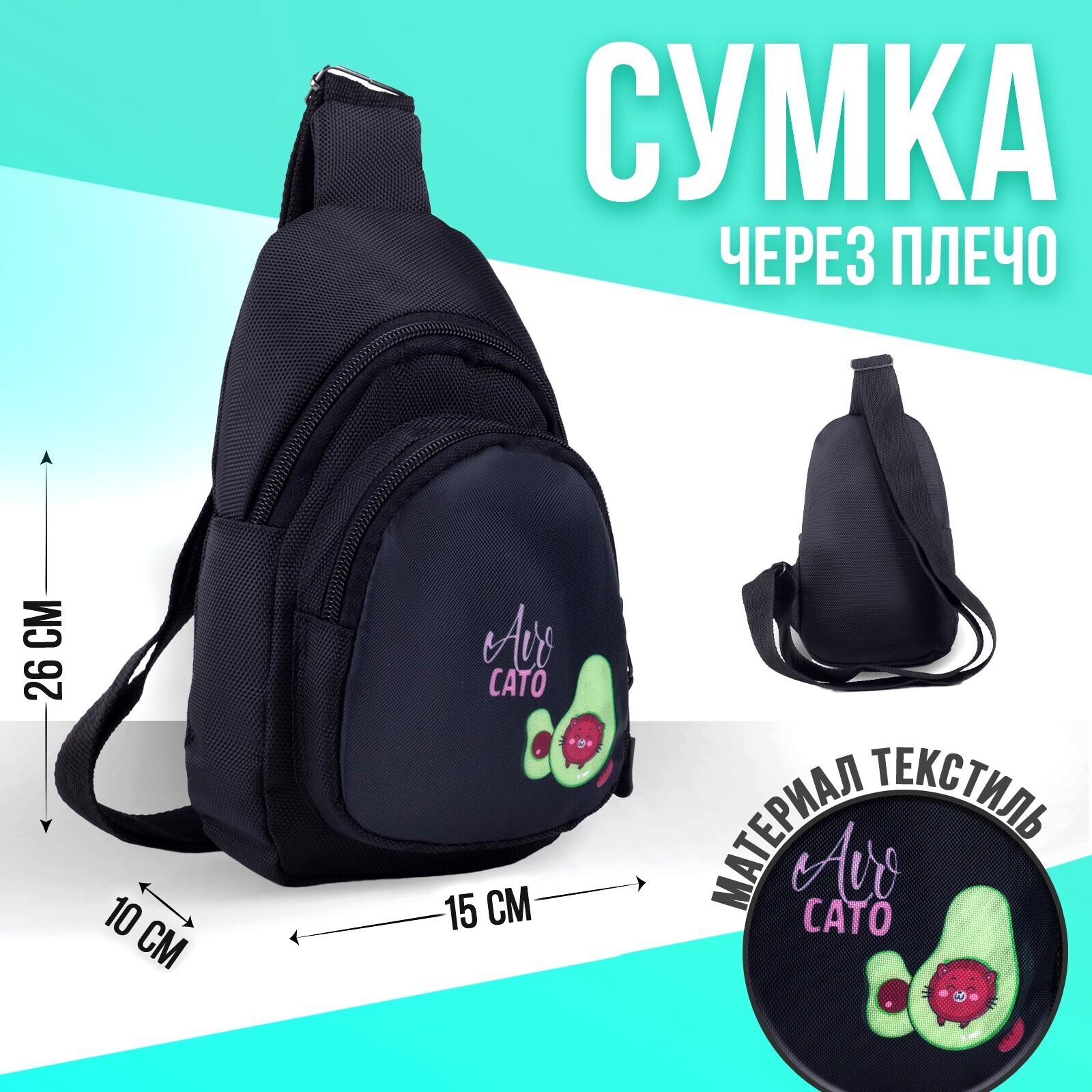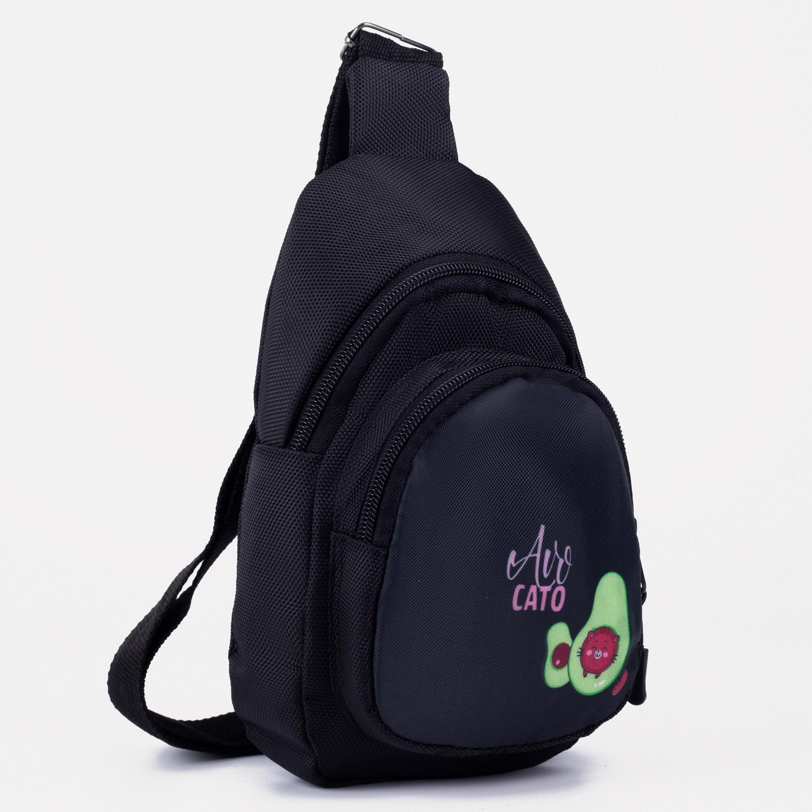 Сумка-рюкзак «Авокадо Кот», 15х10х26 см, отд на молнии, н/карман, регул ремень, чёрный