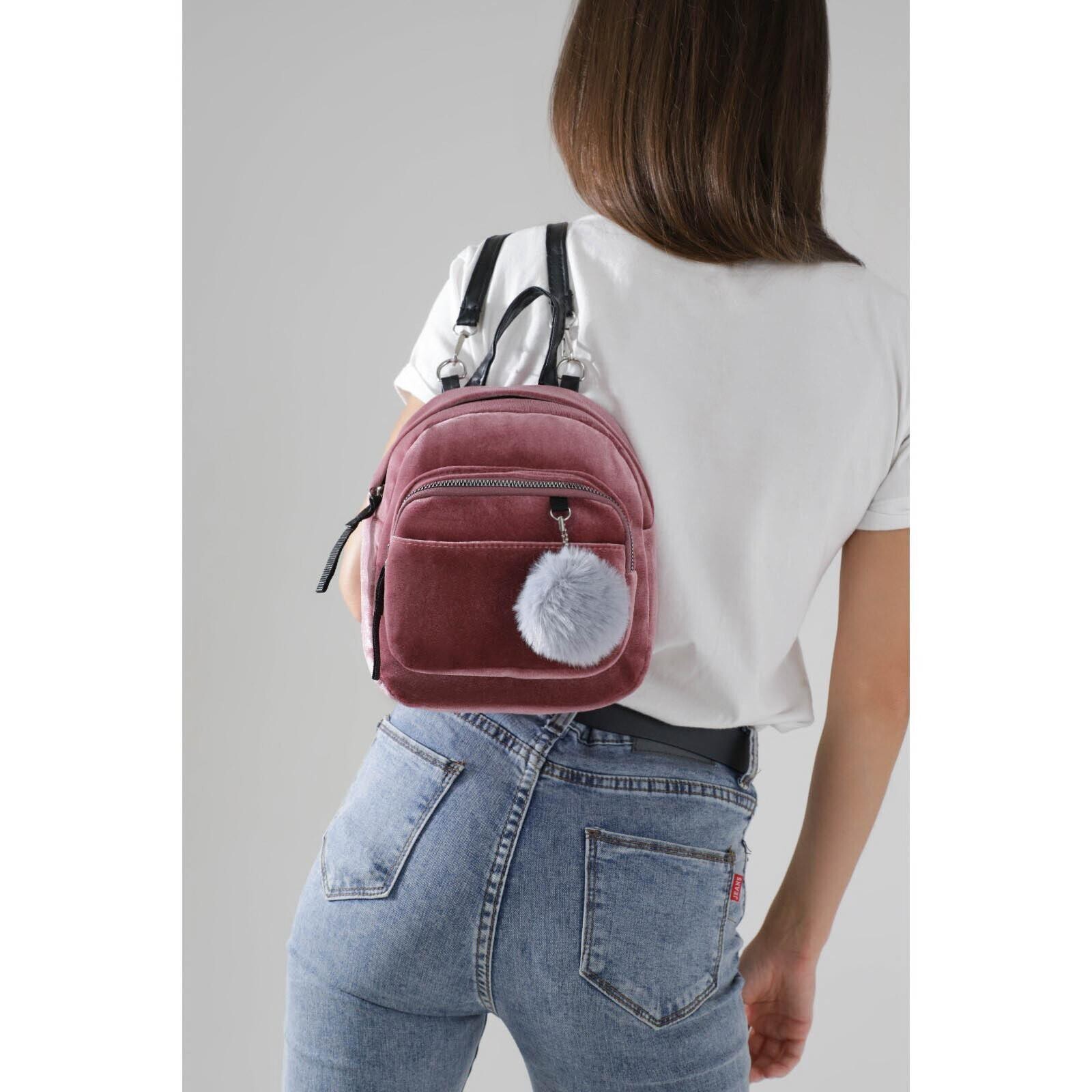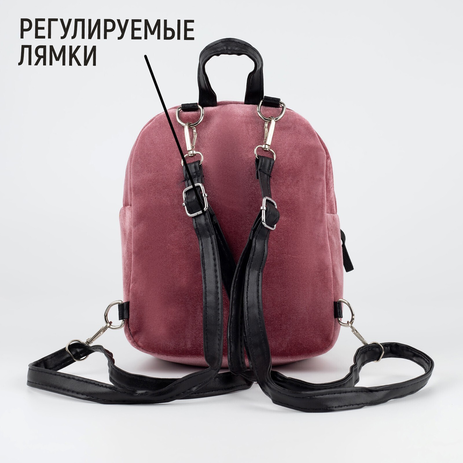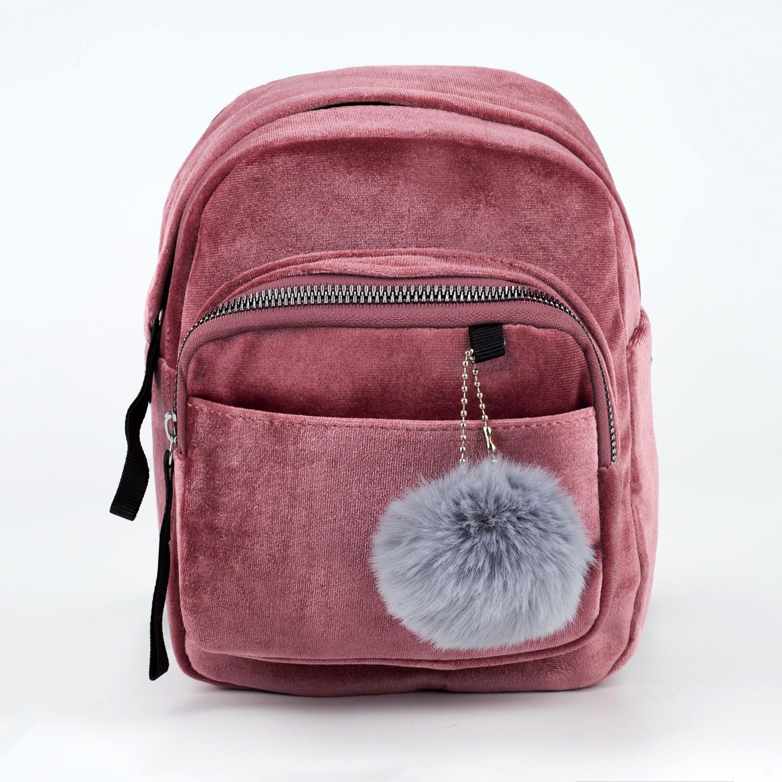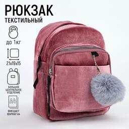 Рюкзак молодежный бархатный, 21х19х10 см, цвет розовый
