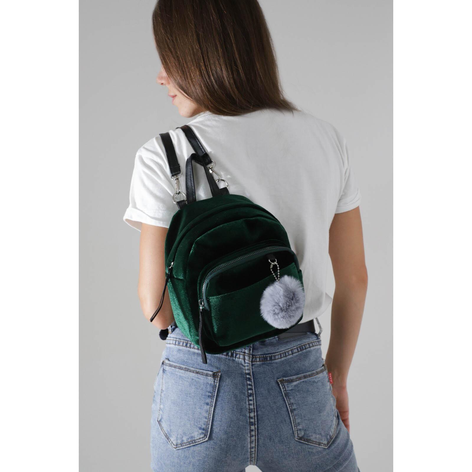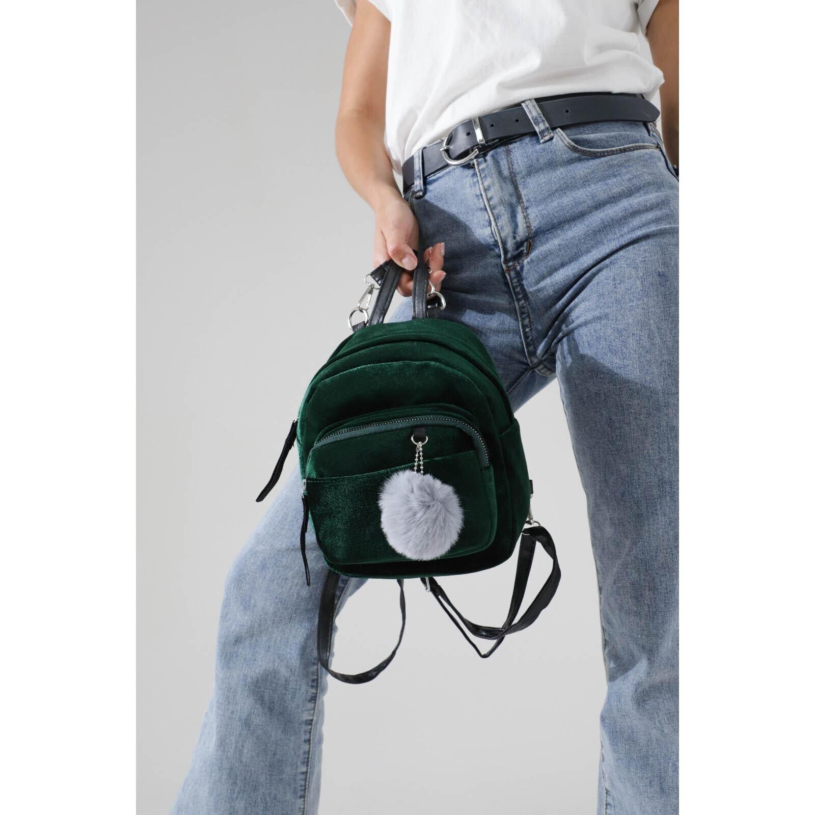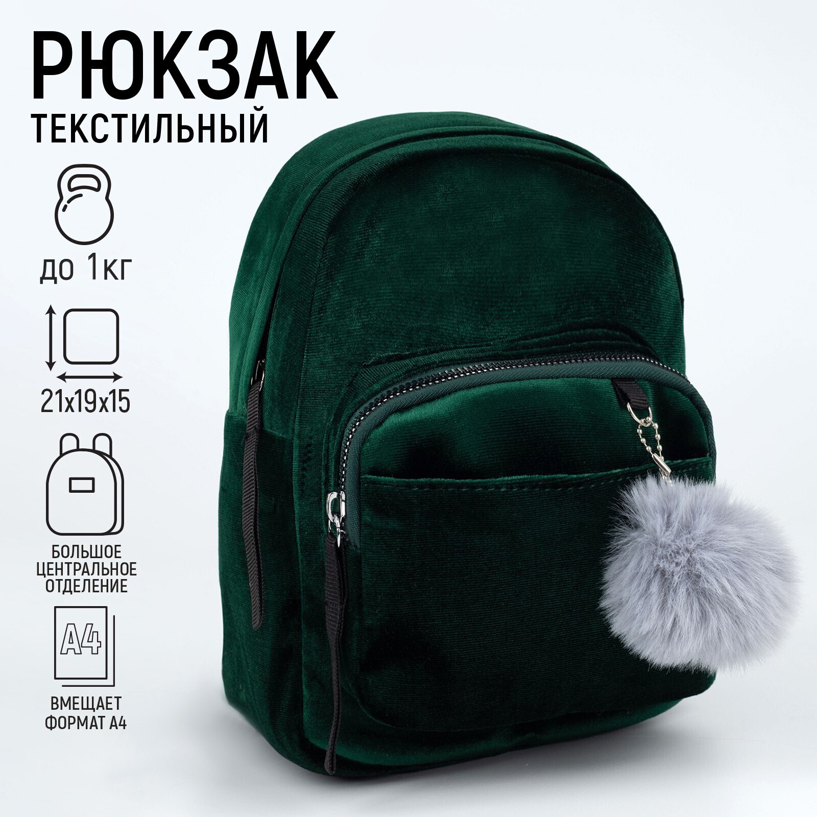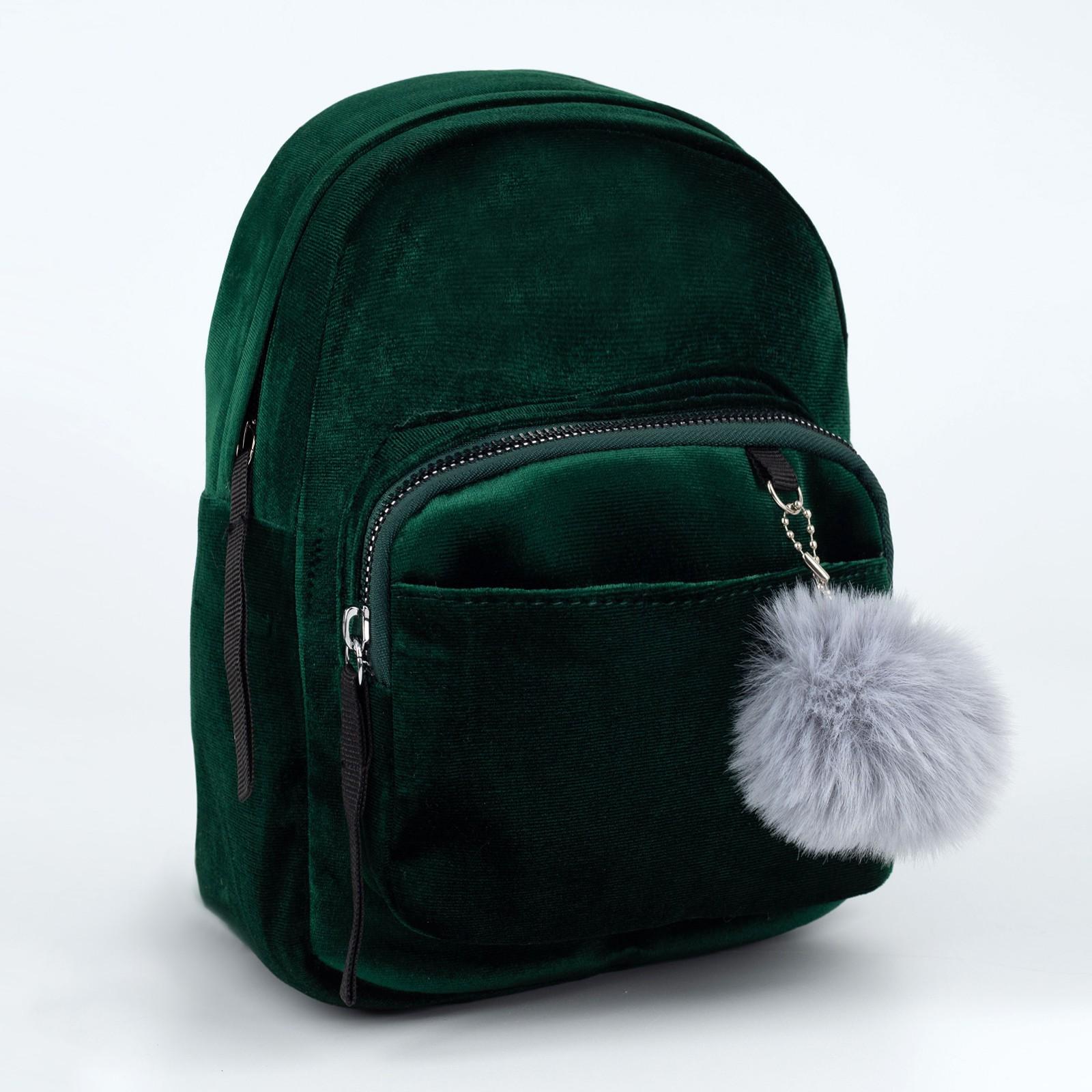 Рюкзак молодежный бархатный, 21х19х10 см, цвет зелёный