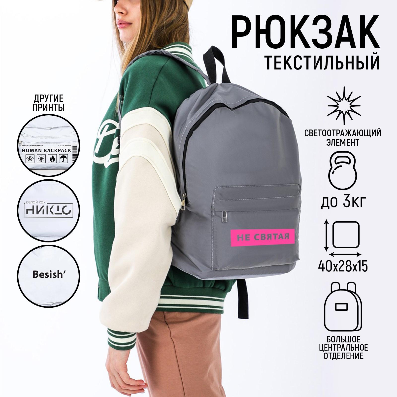 Рюкзак текстильный светоотражающий, «Не святая», 42 х 30 х 12см