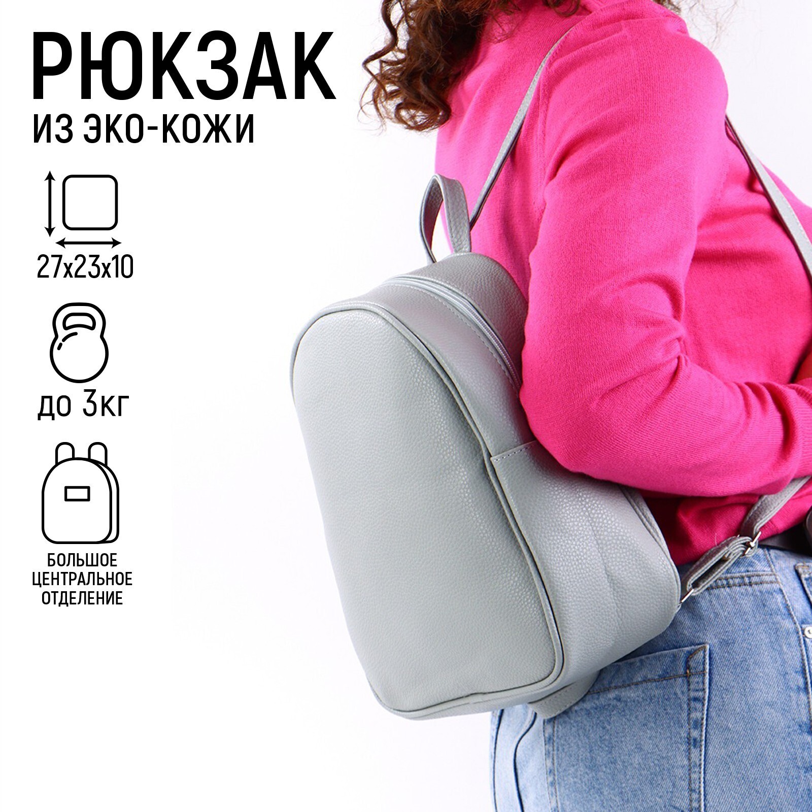 Рюкзак из искусственной кожи с подвесом, цвет серый, 27 х 23 х 10 см